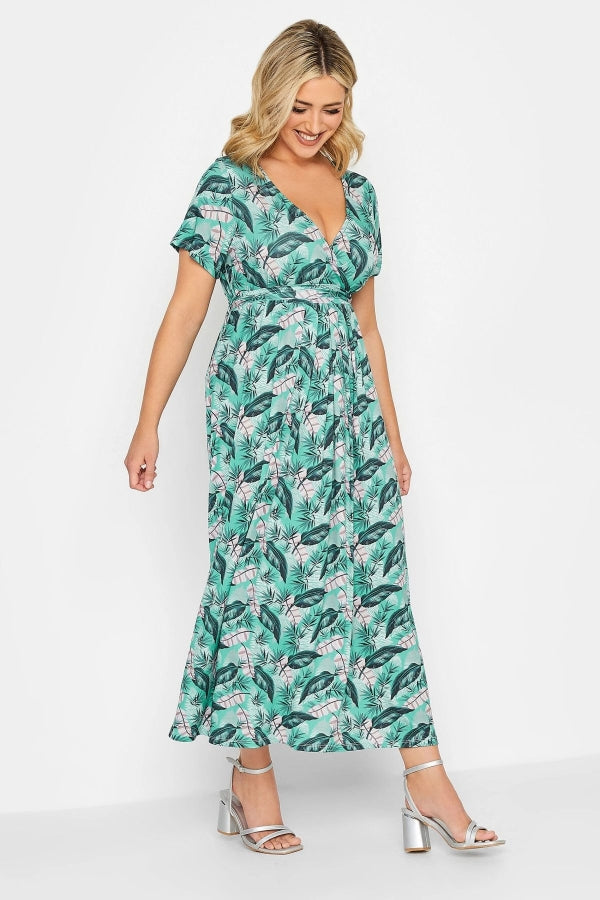 Büyük Beden V Yaka Kısa Kollu Desenli Anvelop Elbise 302161