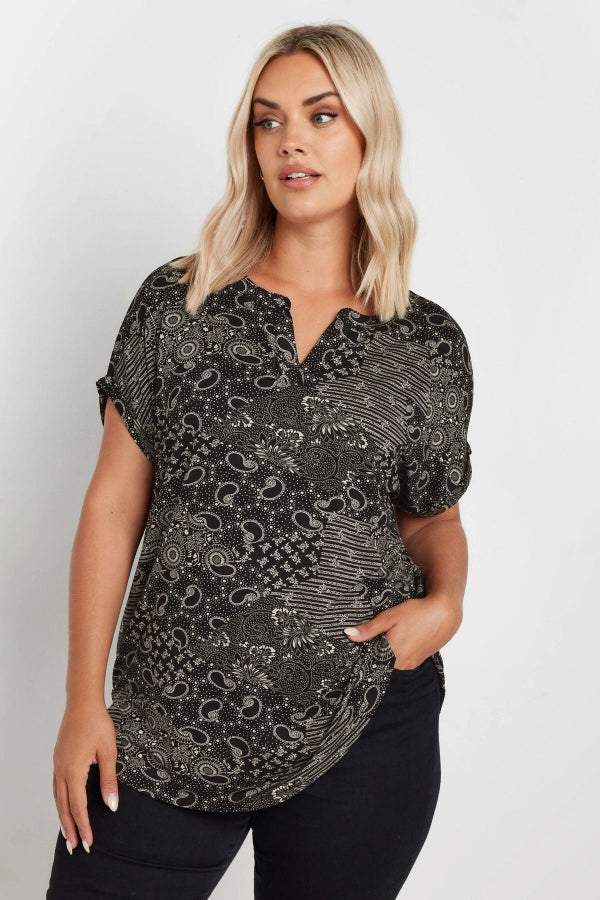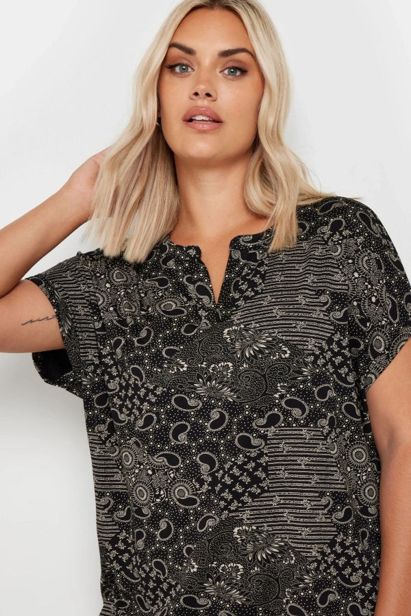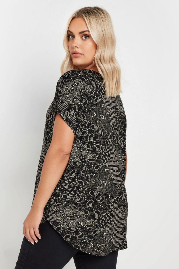 Büyük Beden V Yaka Kısa Kollu Desenli Bluz 303527