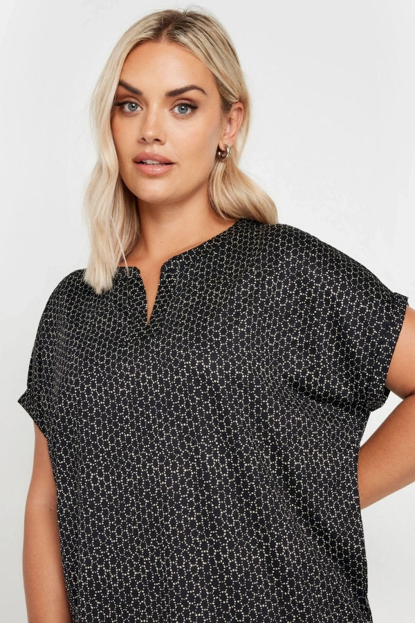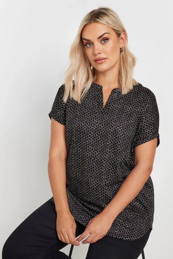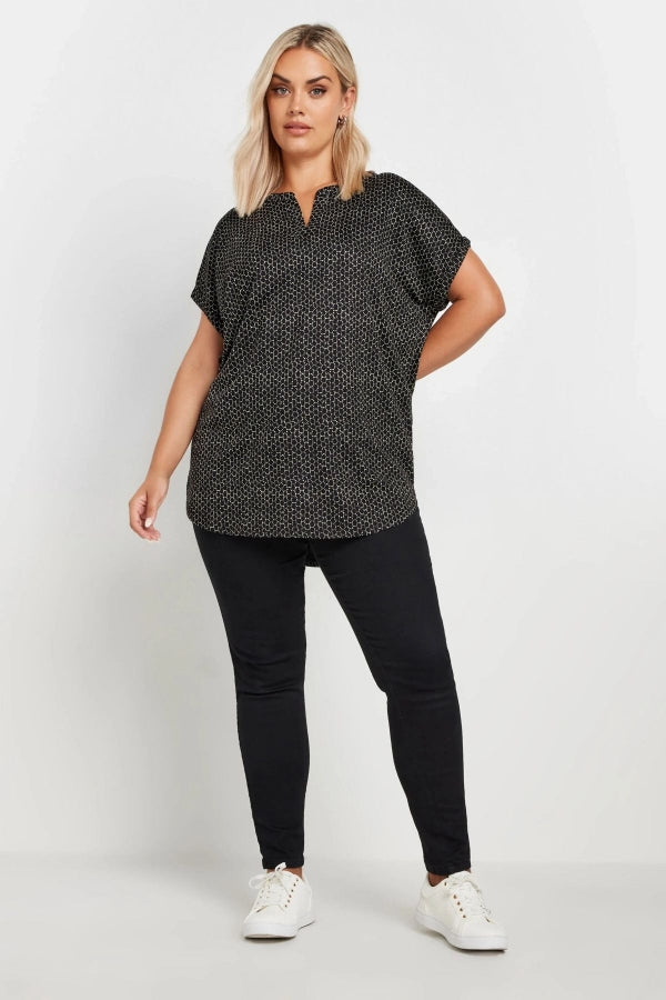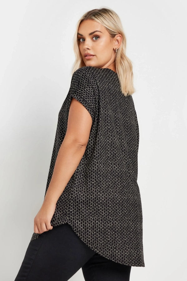 Büyük Beden V Yaka Kısa Kollu Desenli Bluz 303530