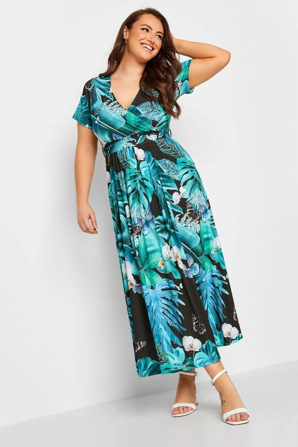 Büyük Beden V Yaka Kısa Kollu Kuşaklı Anvelop Elbise 302293