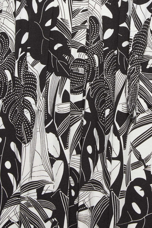 Büyük Beden V Yaka Kısa Kollu Kuşaklı Desenli Uzun Elbise 301698