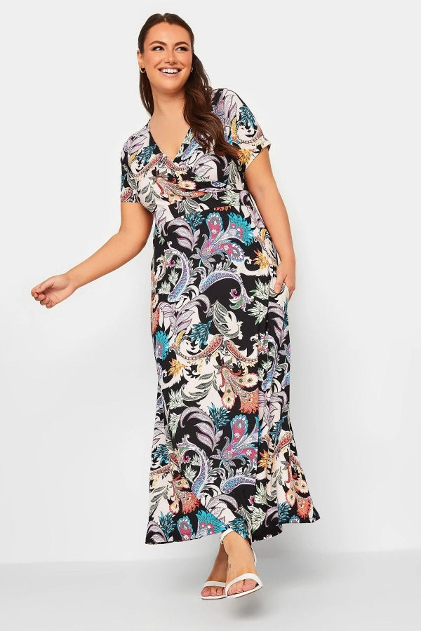 Büyük Beden V Yaka Kısa Kollu Likralı Anvelop Elbise 302224