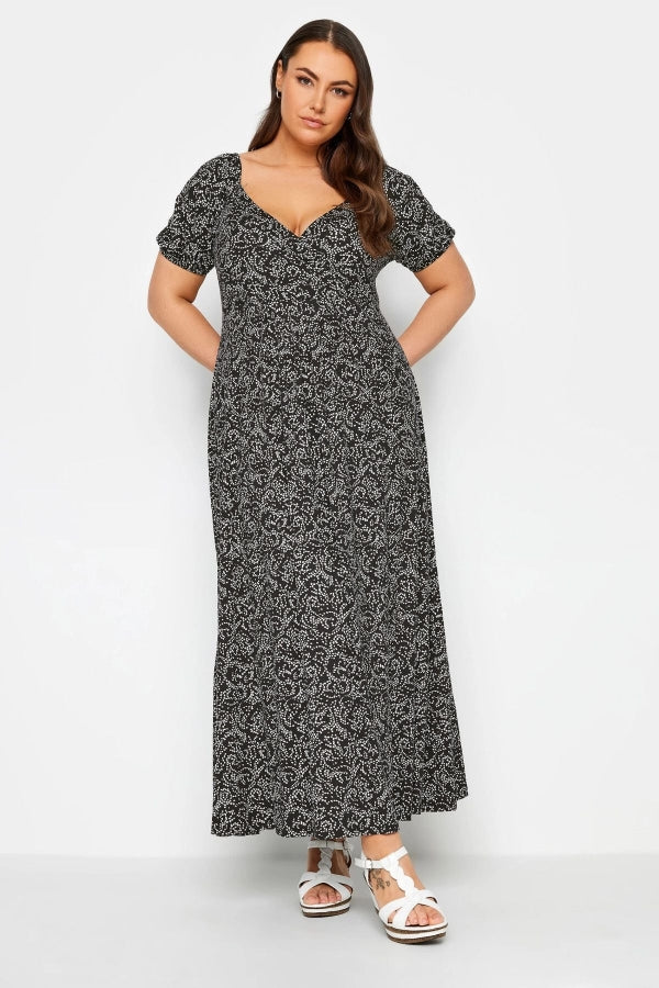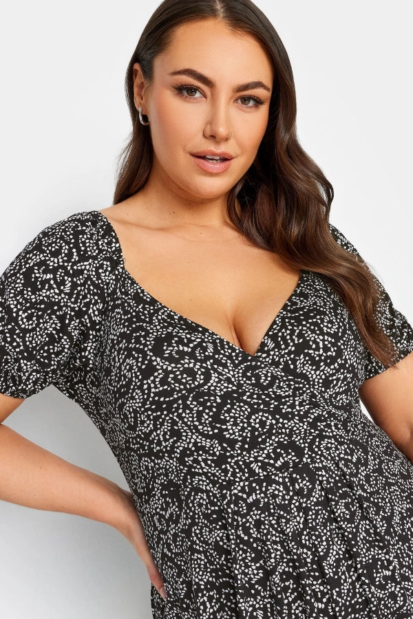 Büyük Beden V Yaka Kısa Kollu Likralı Anvelop Elbise 302642