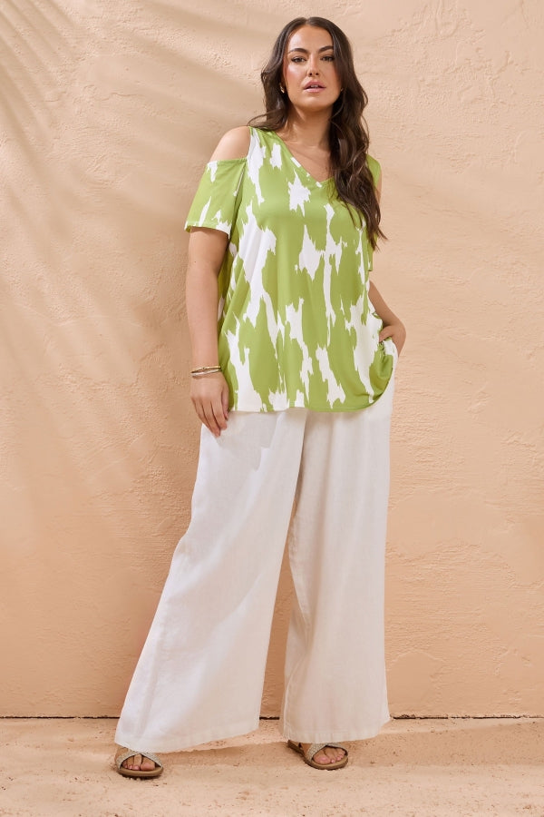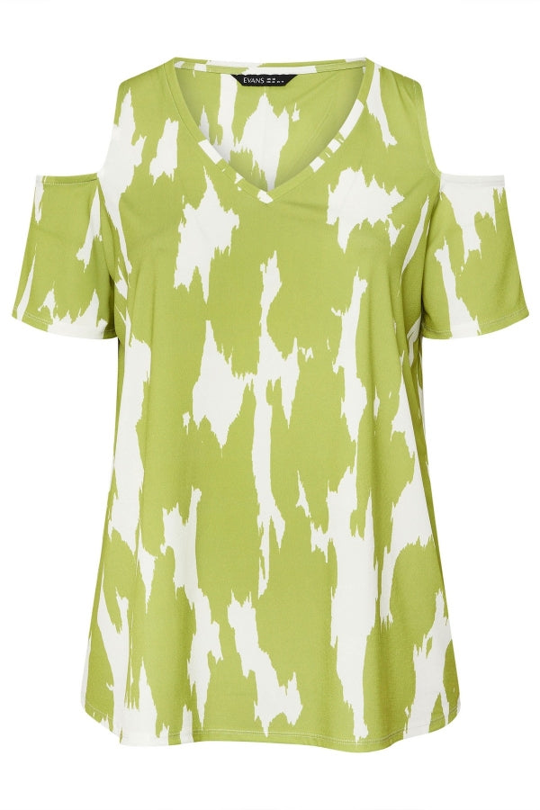 Büyük Beden V Yaka Kısa Kollu Omuz Detaylı Soyut Desenli Bluz 616307