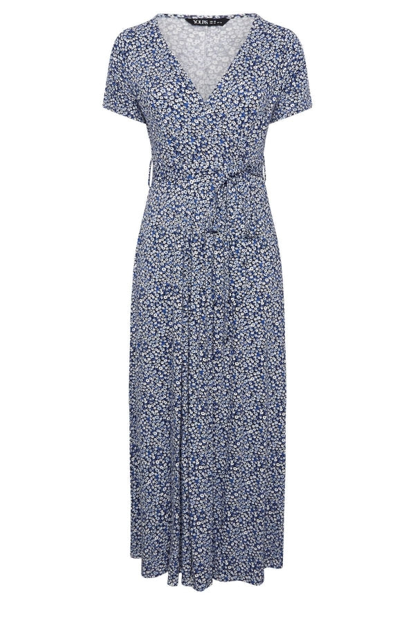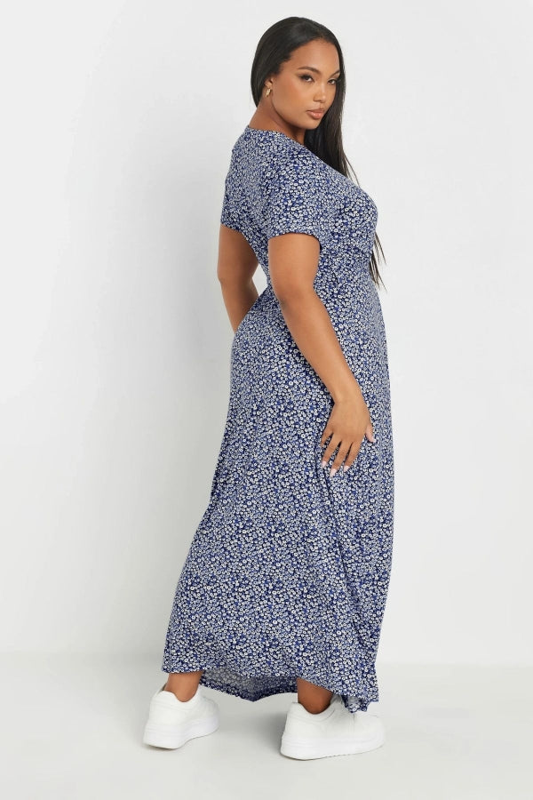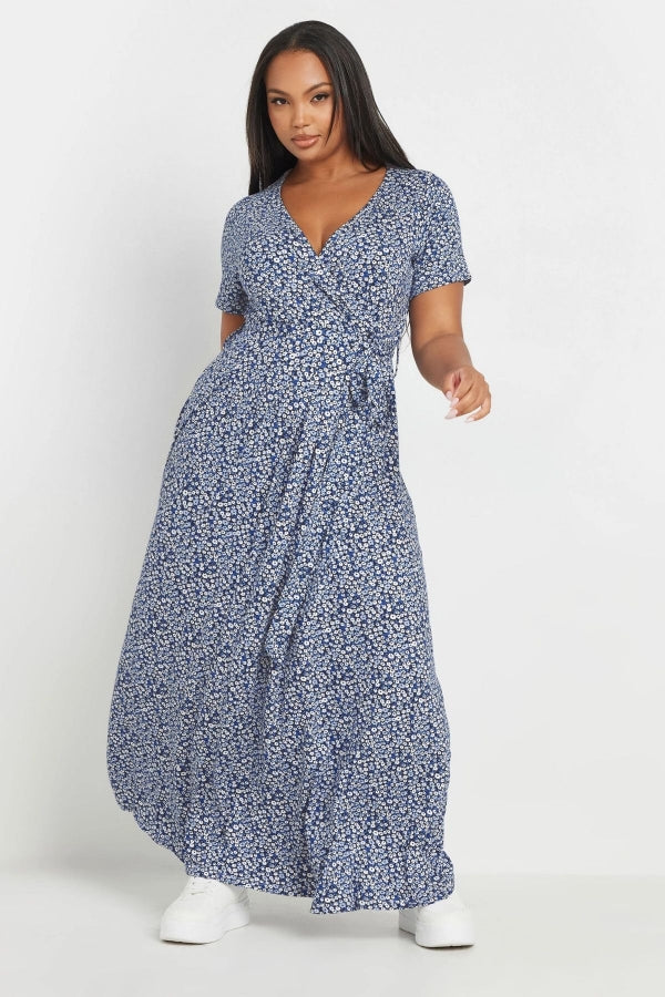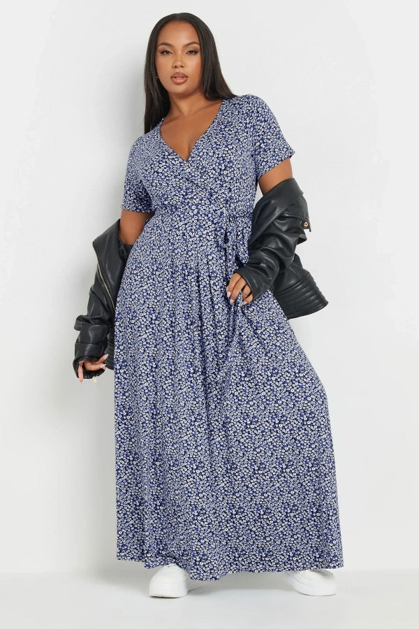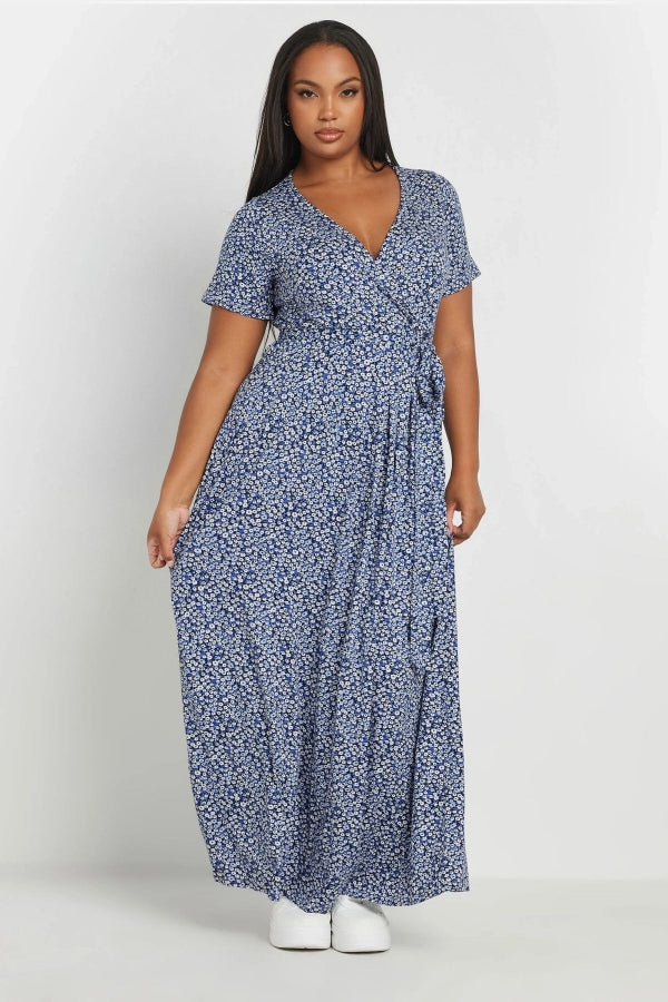 Büyük Beden V Yaka Kısa Kollu Önü Kuşaklı Maxi Elbise 303506