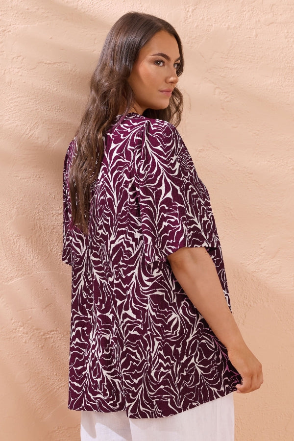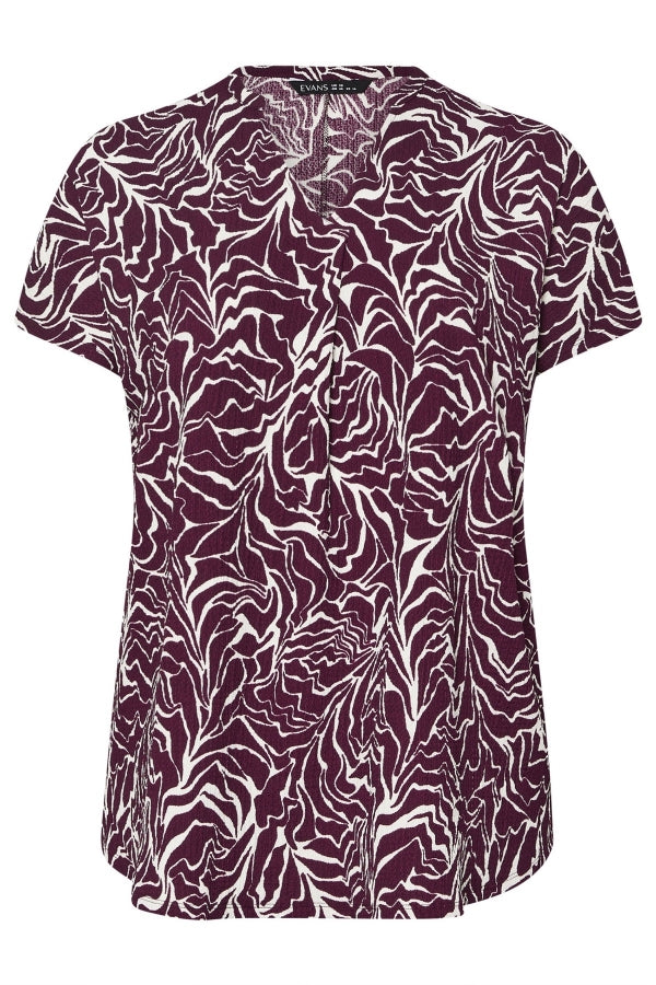 Büyük Beden V Yaka Kısa Kollu Soyut Desenli Asimetrik Kesim T-shirt 616219