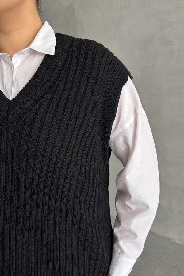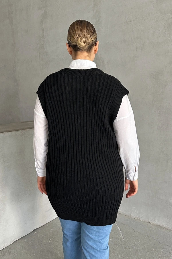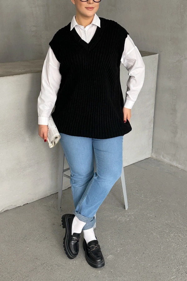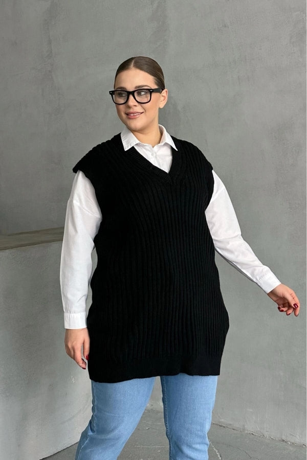 Büyük Beden V Yaka Kısa Kollu Triko Süveter 302134