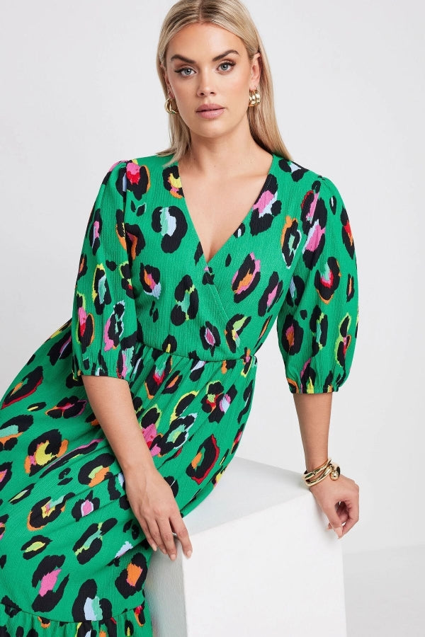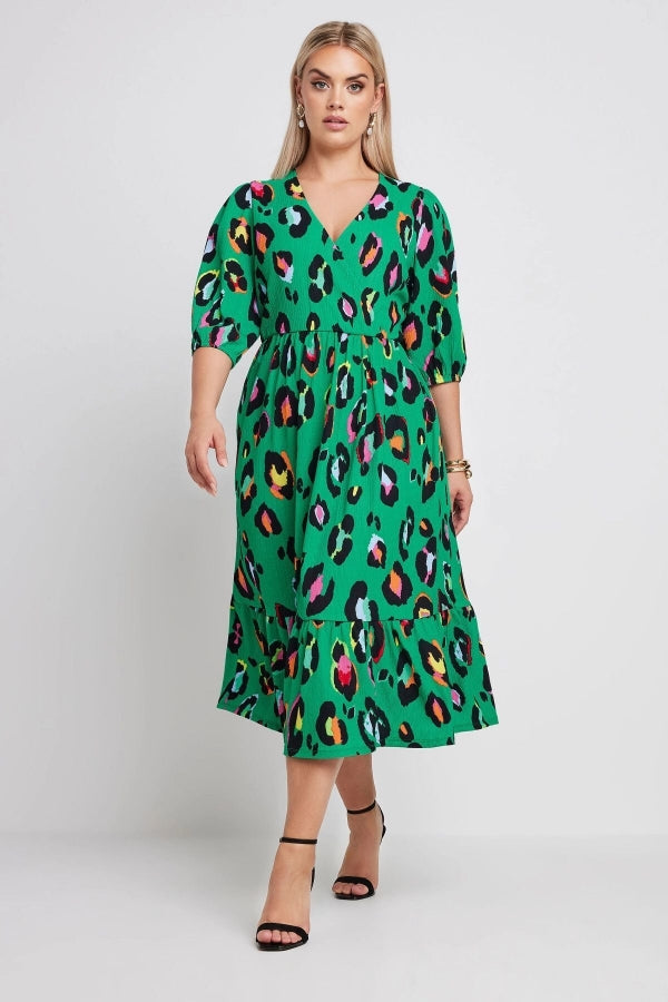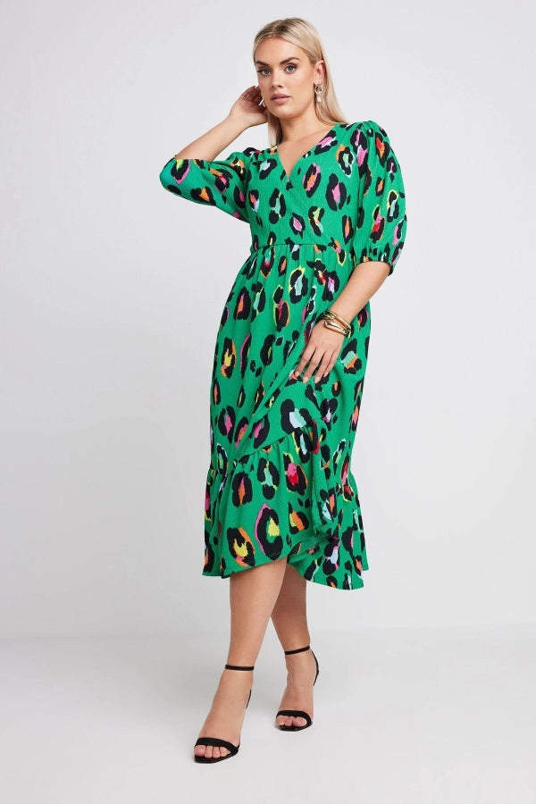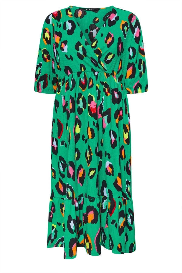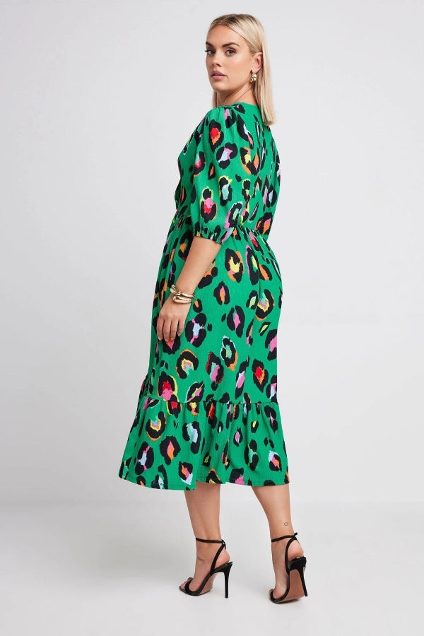 Büyük Beden V Yaka Kolları Lastikli Desenli Midi Boy Anvelop Elbise 137910