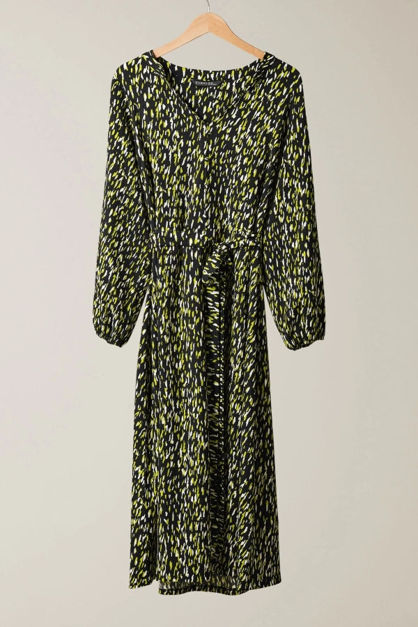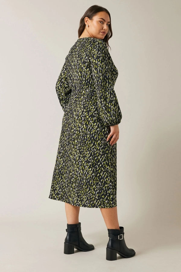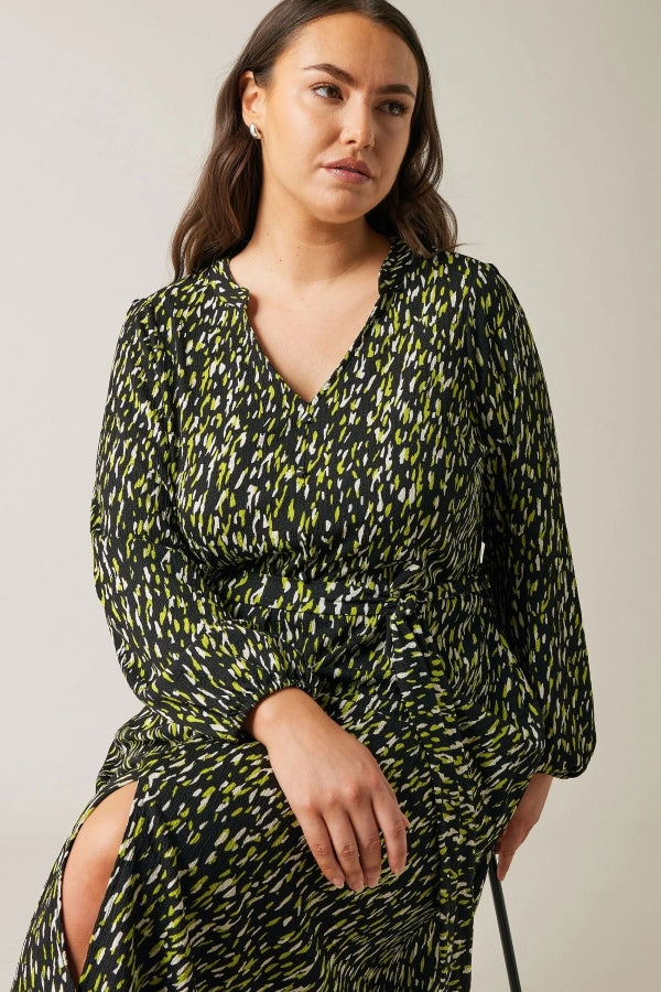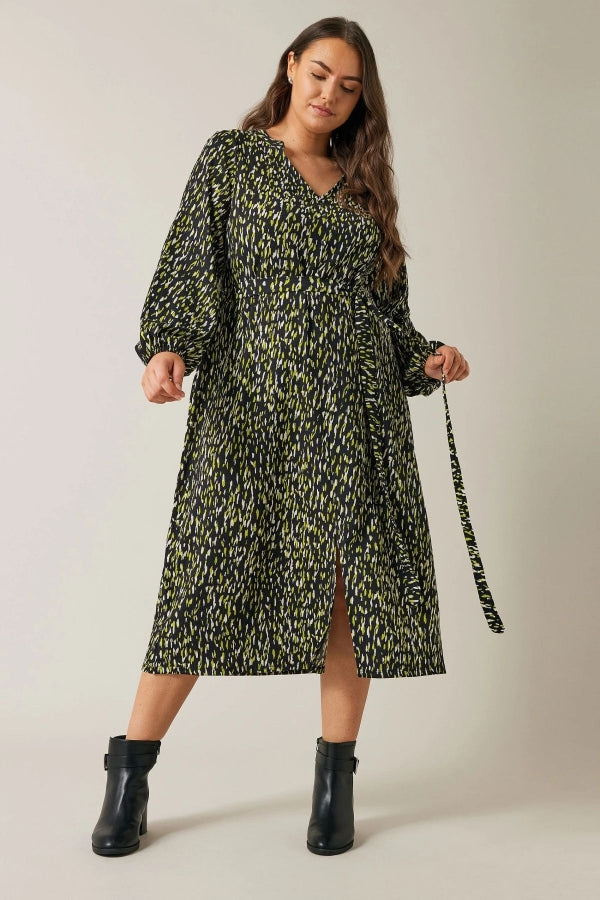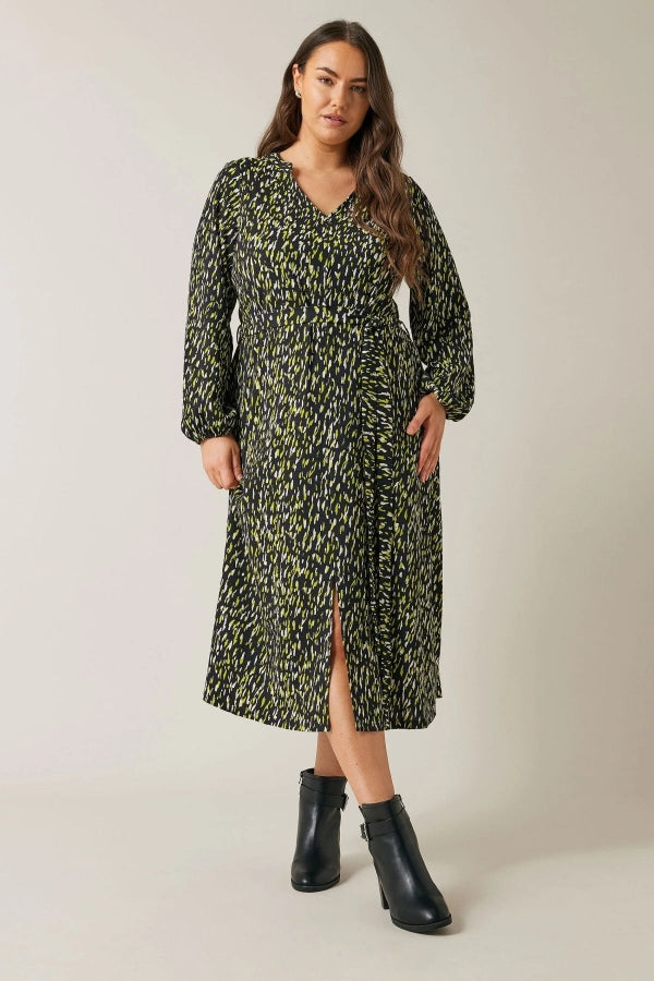 Büyük Beden V Yaka Kolları Lastikli Yırtmaç Detaylı Midi Boy Elbise 615628