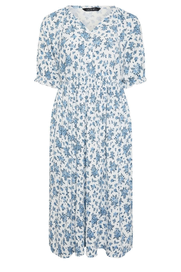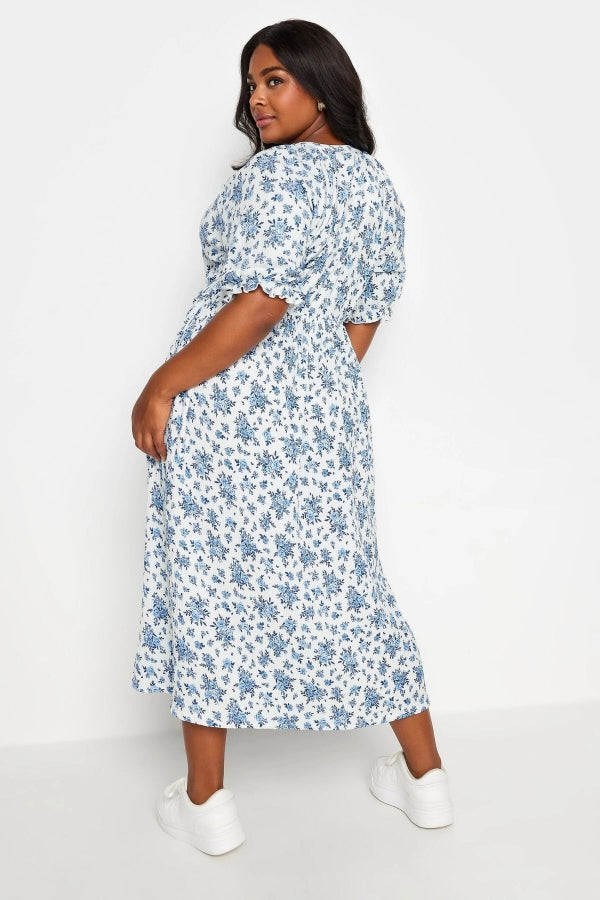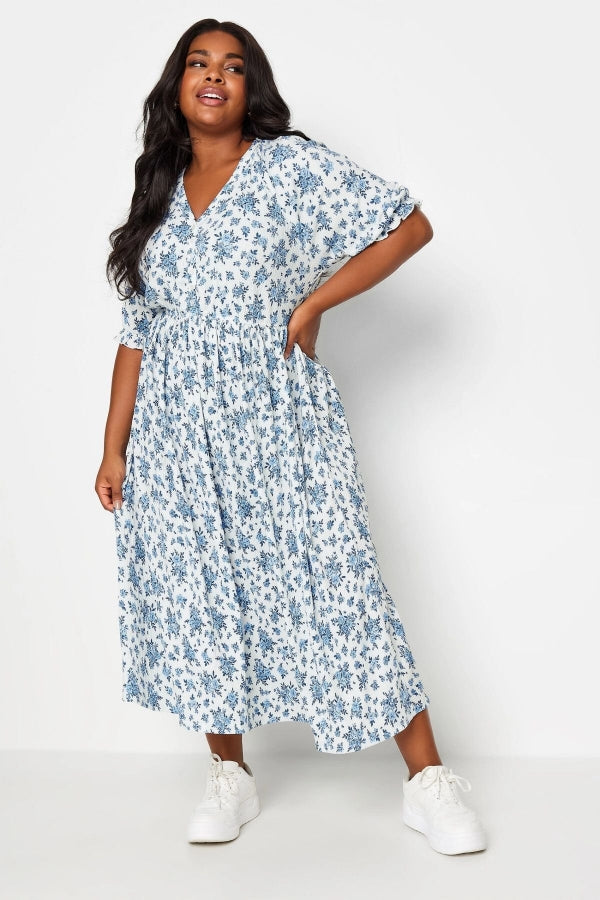Büyük Beden V Yaka Kolları ve Beli Lastikli Desenli Uzun Elbise 137786