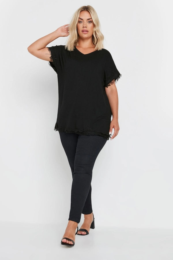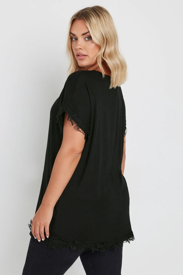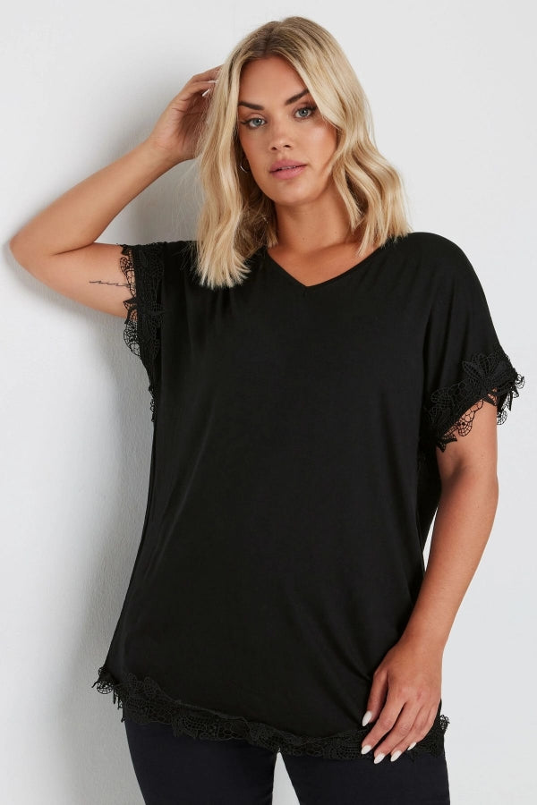 Büyük Beden V Yaka Kolu ve Eteği Dantel Detaylı Bluz 303374