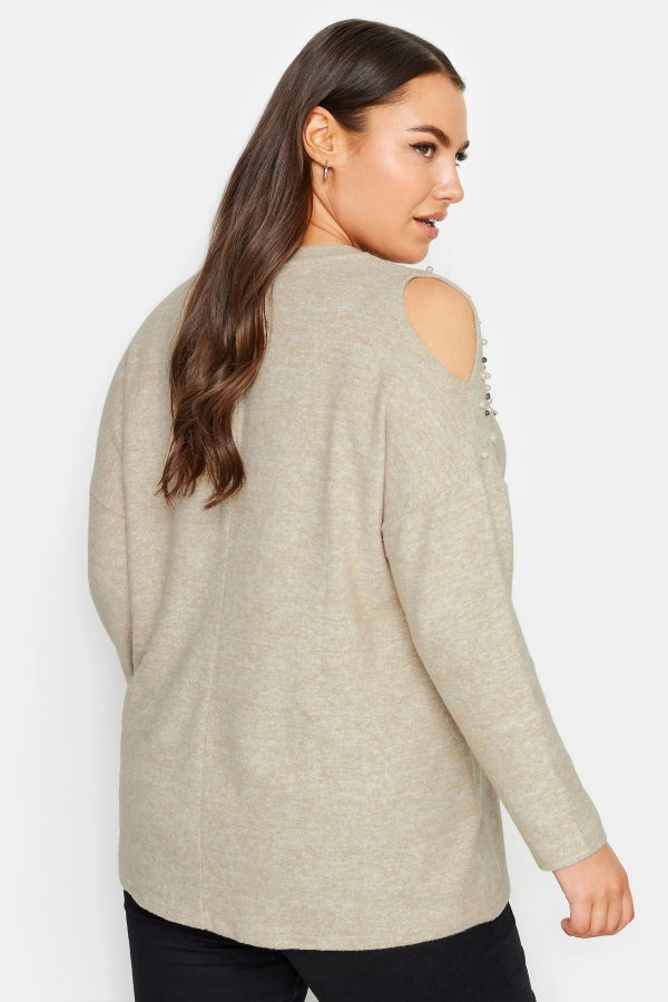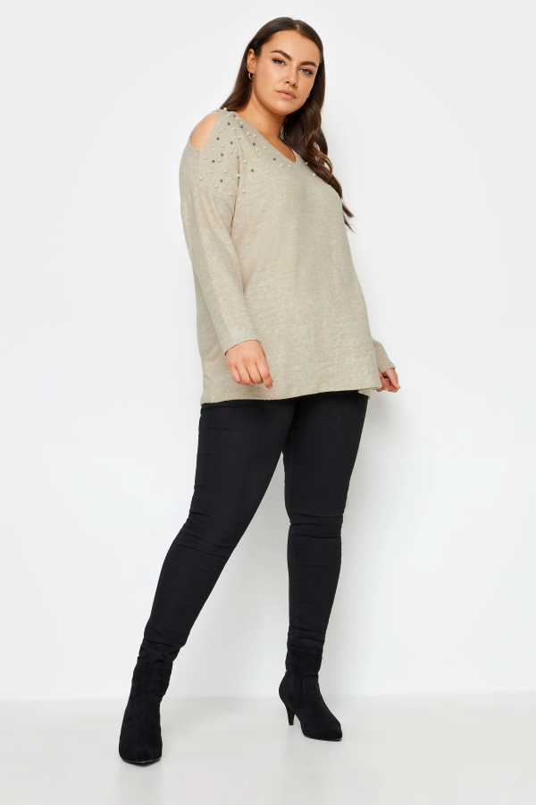 Büyük Beden V Yaka Omuz Detaylı Boncuk İşlemeli Kazak 302776