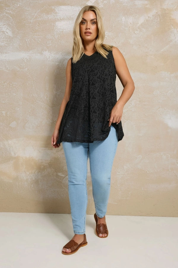 Büyük Beden V Yaka Sıfır Kol Astarsız Dantel Bluz 304101