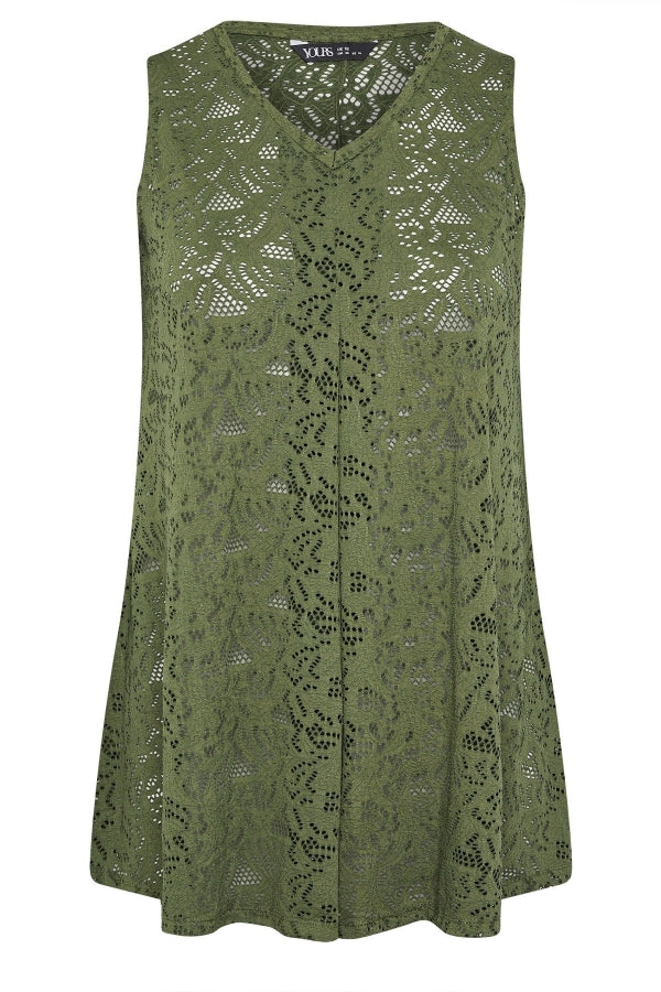 Büyük Beden V Yaka Sıfır Kol Astarsız Dantel T-shirt 304102