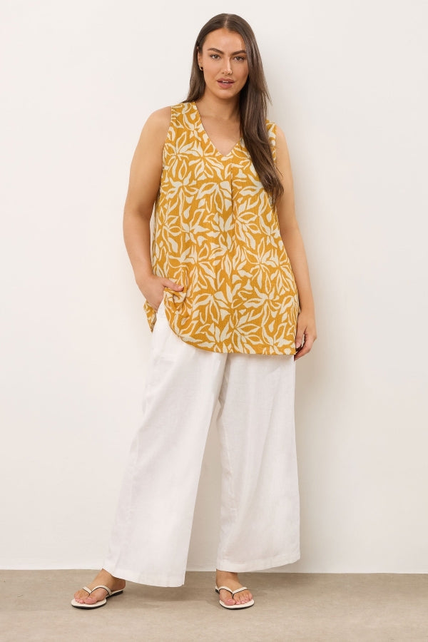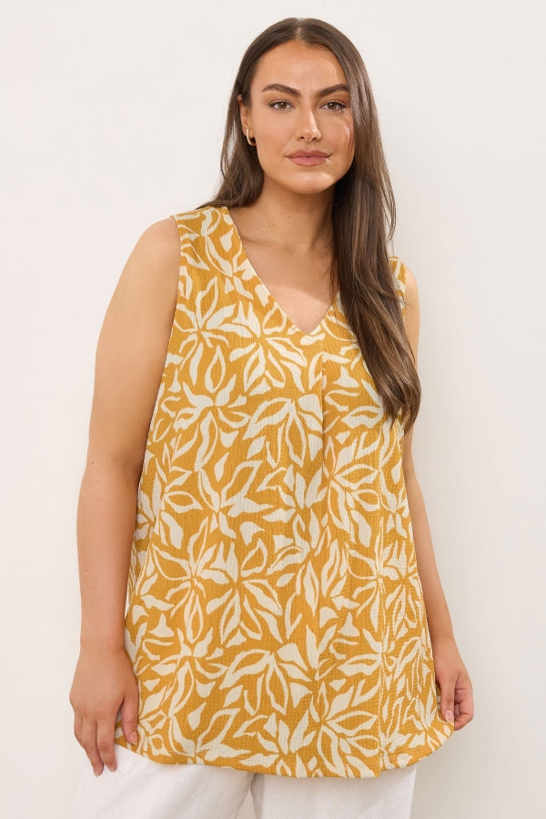 Büyük Beden V Yaka Sıfır Kol Çiçek Desenli Asimetrik Kesim T-shirt 616295