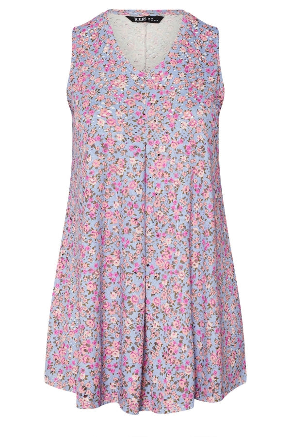Büyük Beden V Yaka Sıfır Kol Çiçek Desenli Astarsız Dantel Bluz 304217
