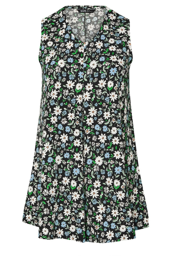 Büyük Beden V Yaka Sıfır Kol Çiçek Desenli T-shirt 304168