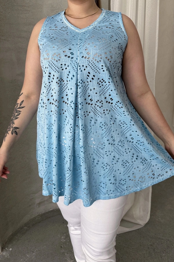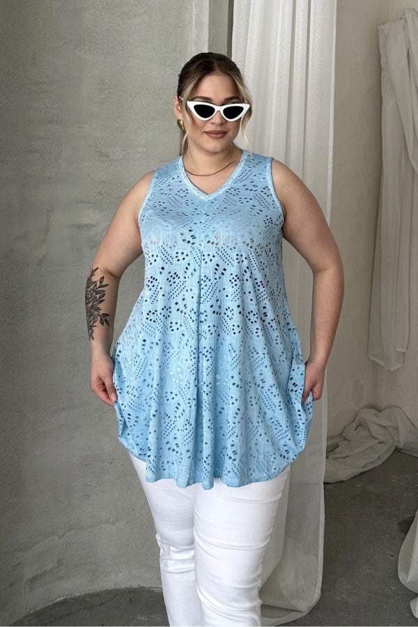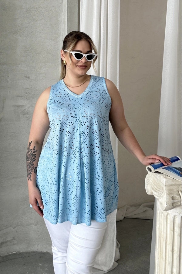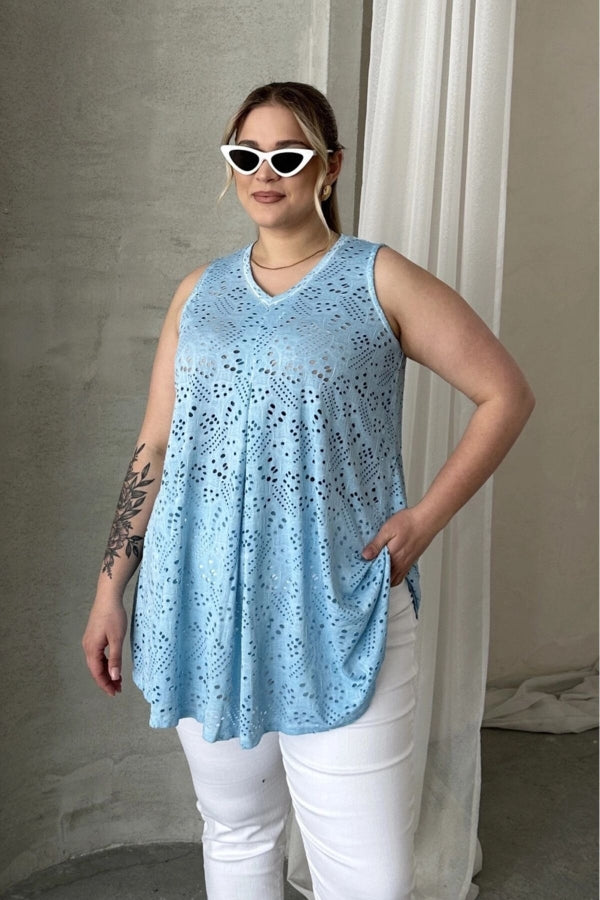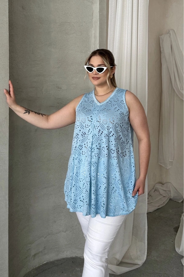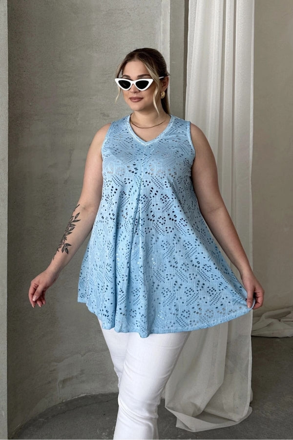 Büyük Beden V Yaka Sıfır Kol Dantel Detaylı Astarsız Bluz 302965