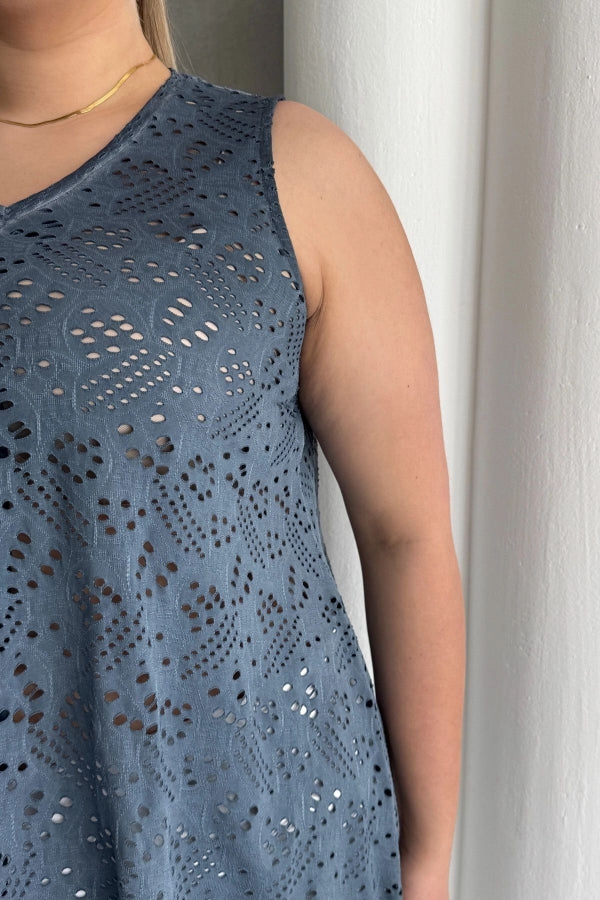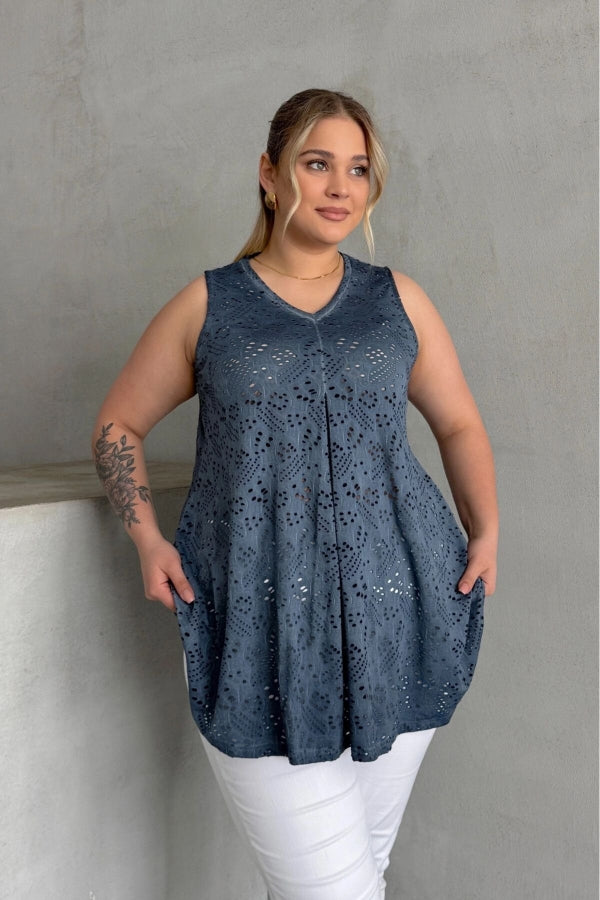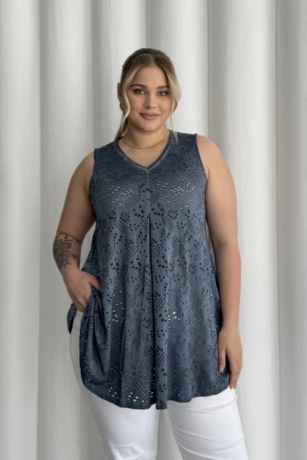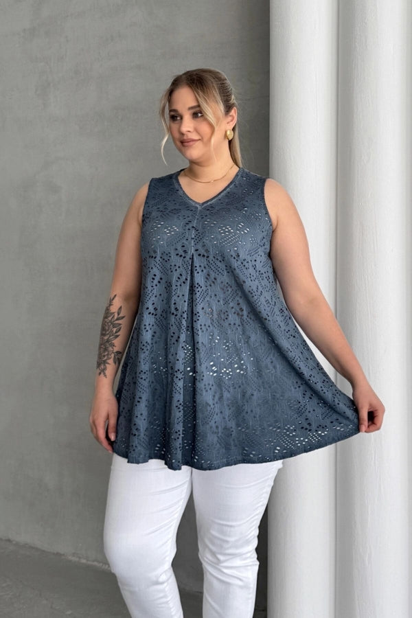 Büyük Beden V Yaka Sıfır Kol Dantel Detaylı Astarsız Bluz 302966