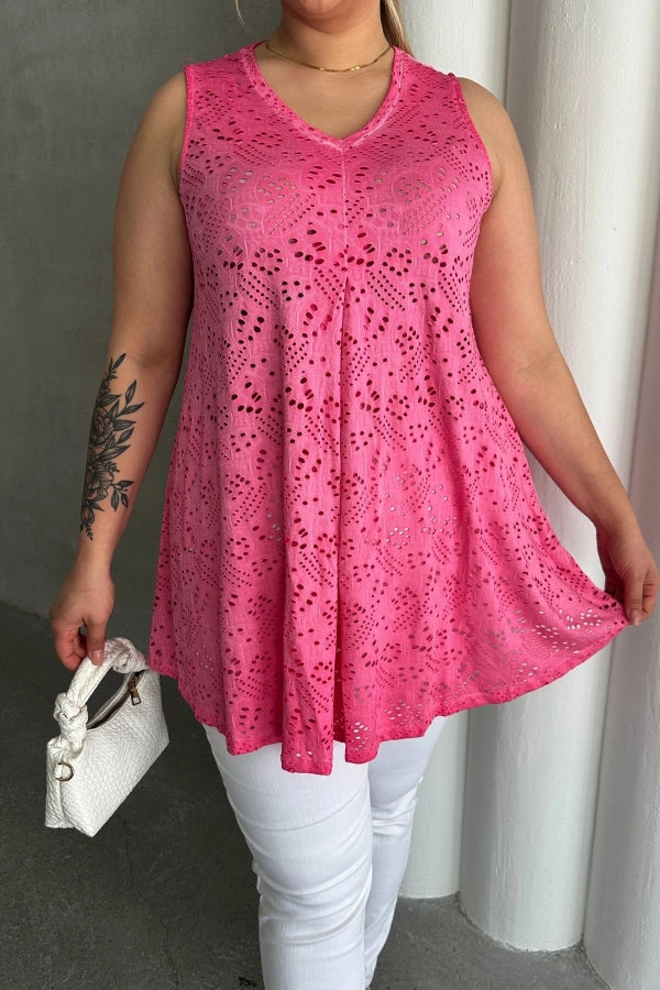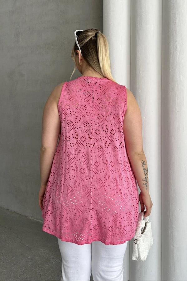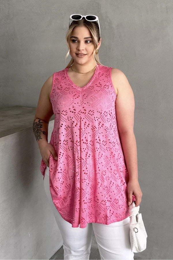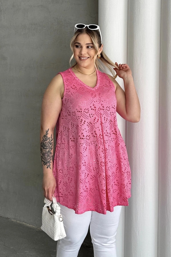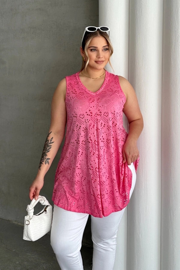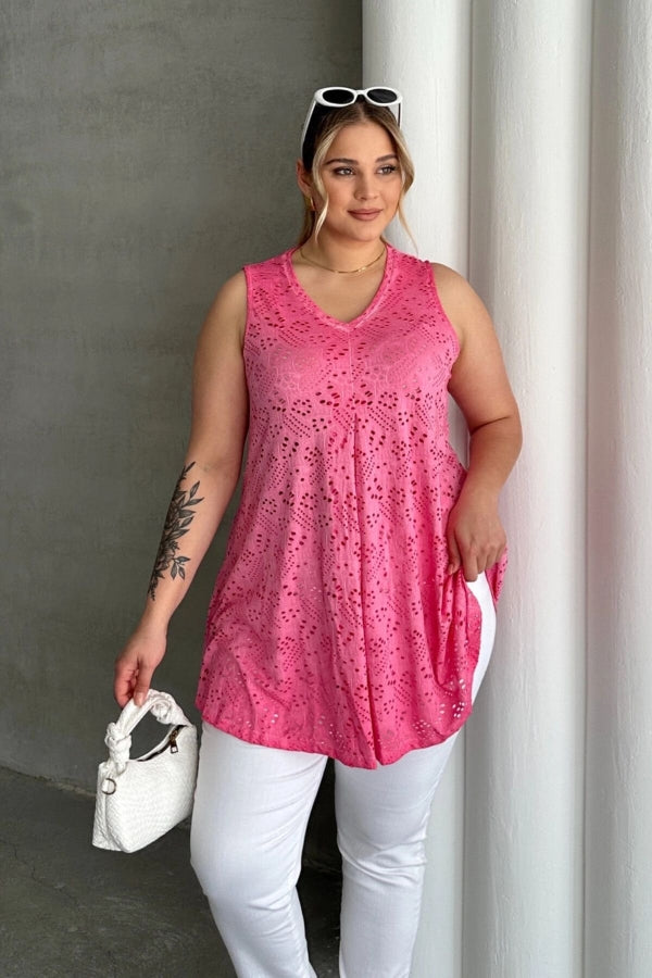 Büyük Beden V Yaka Sıfır Kol Dantel Detaylı Astarsız Bluz 302967