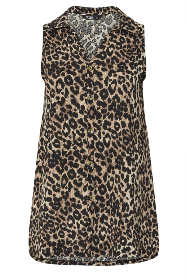 Büyük Beden V Yaka Sıfır Kol Önü Düğmeli Leopar Desenli Gömlek 322677