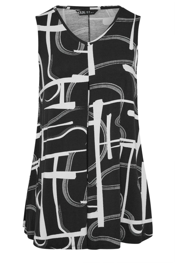 Büyük Beden V Yaka Sıfır Kol Pileli Desenli Likralı Bluz 304105