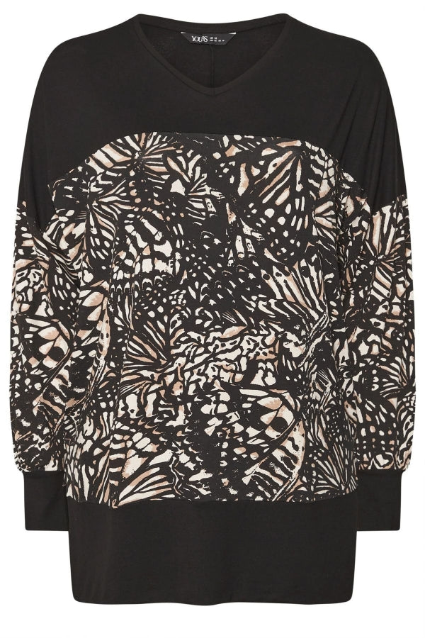 Büyük Beden V Yaka Uzun Kollu Bileği Lastikli Yırtmaçlı Bluz 303724