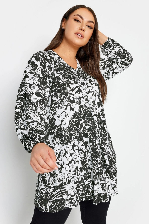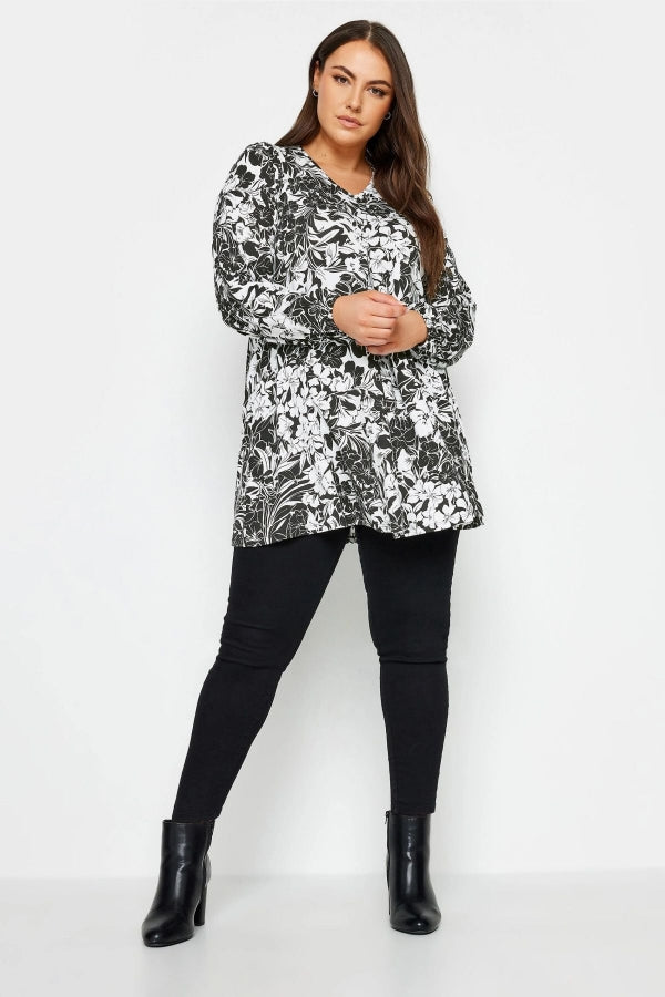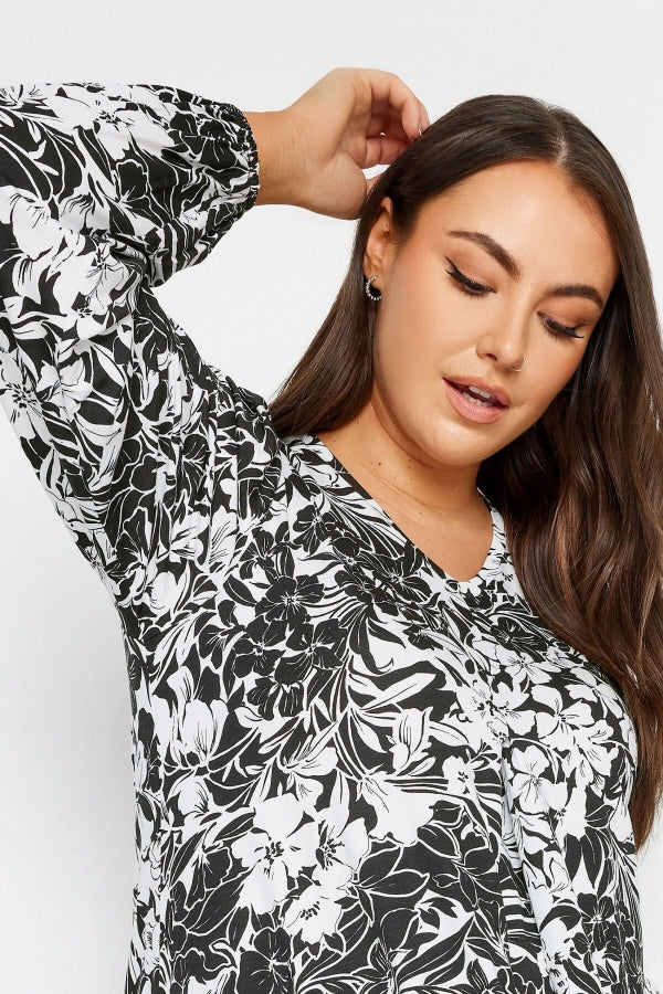 Büyük Beden V Yaka Uzun Kollu Bilekleri Lastikli Eteği Fırfırlı Likralı Bluz 302954