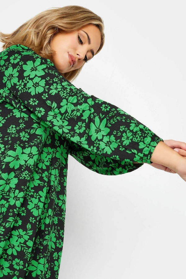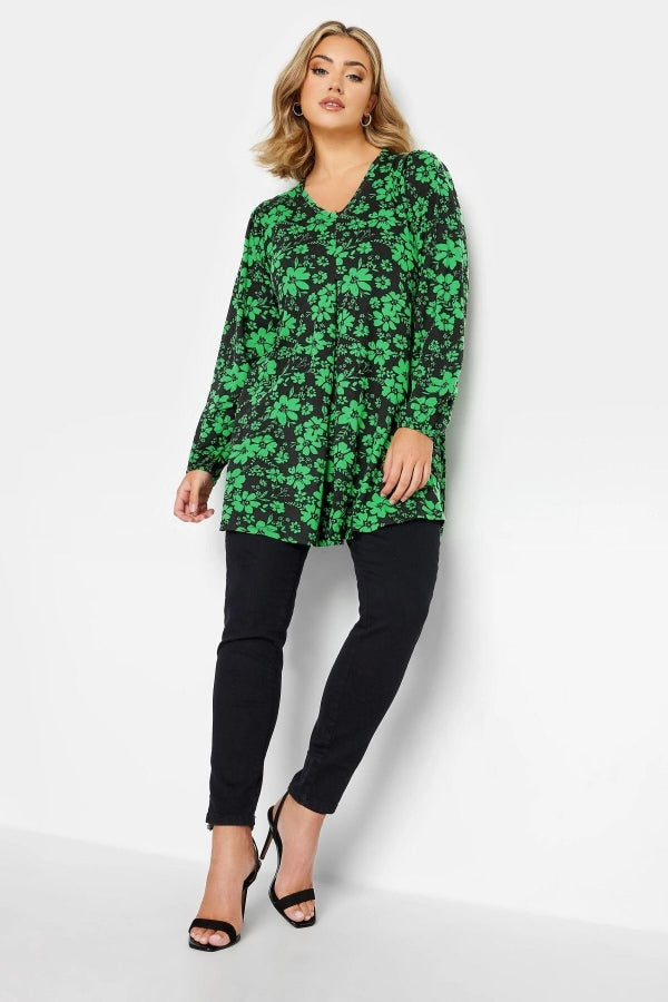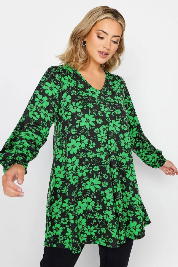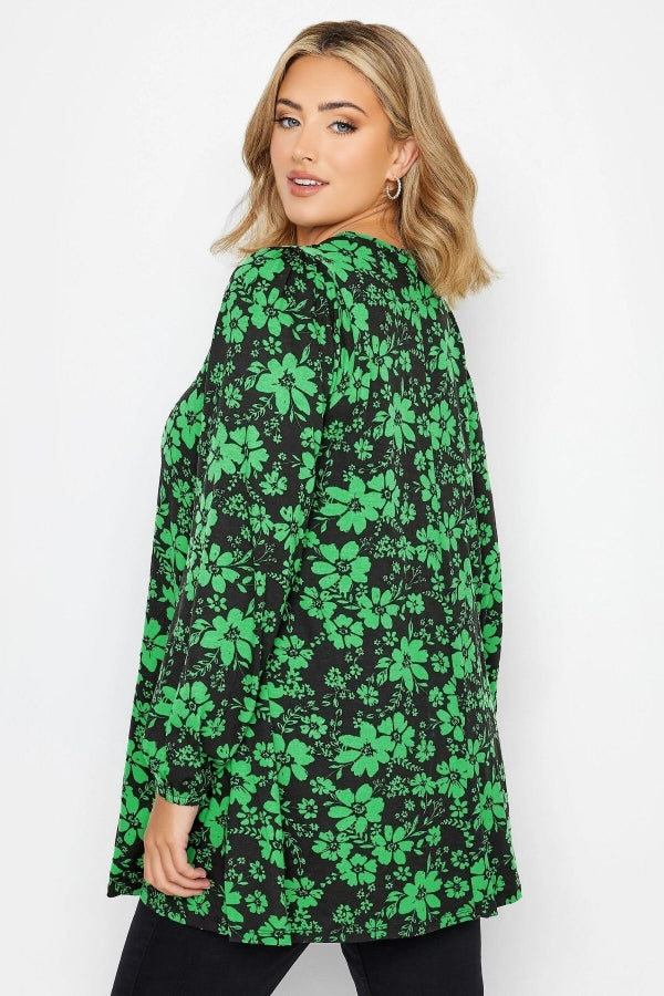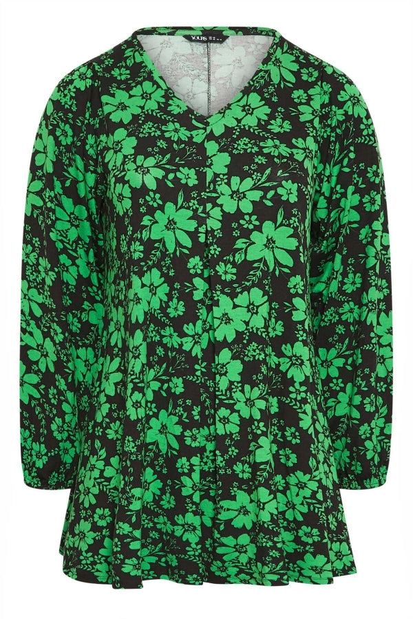 Büyük Beden V Yaka Uzun Kollu Bilekleri Lastikli Eteği Fırfırlı Likralı Bluz 321116