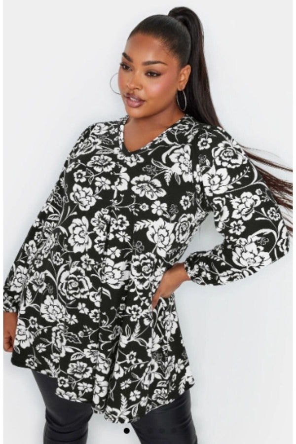 Büyük Beden V Yaka Uzun Kollu Bilekleri Lastikli Eteği Fırfırlı Likralı Bluz 321229