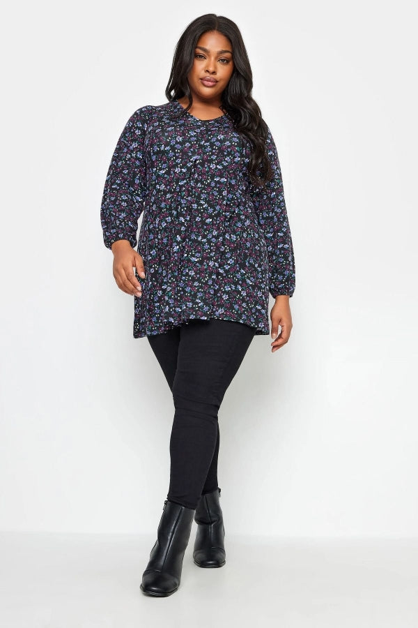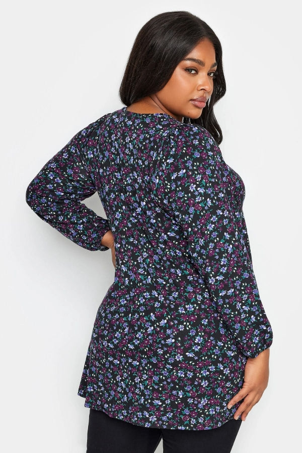 Büyük Beden V Yaka Uzun Kollu Bilekleri Lastikli Eteği Fırfırlı Likralı Bluz 321406