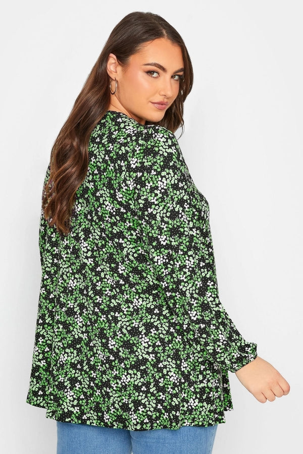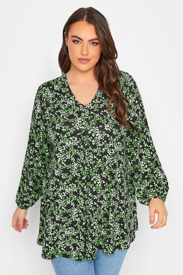 Büyük Beden V Yaka Uzun Kollu Bilekleri Lastikli Eteği Fırfrılı Likralı Bluz 320636