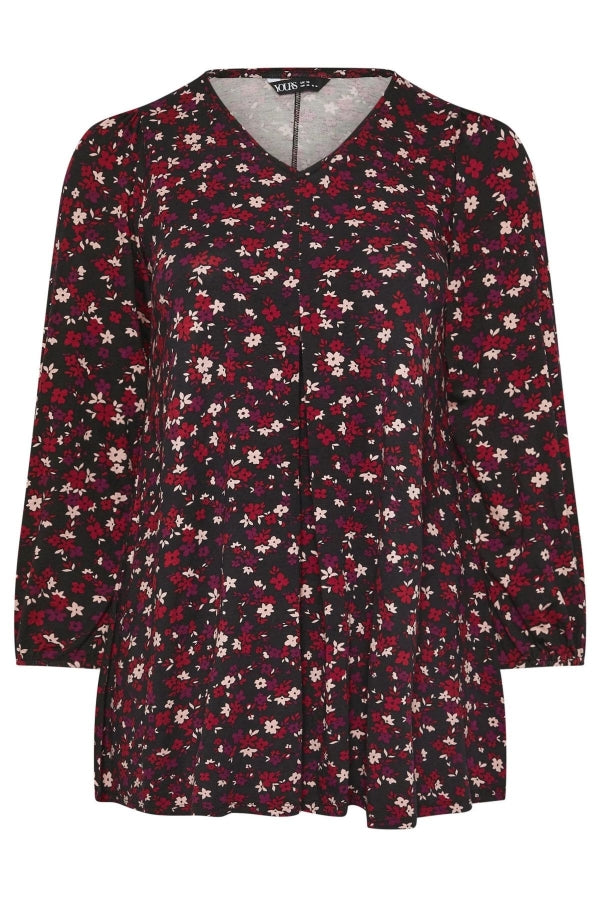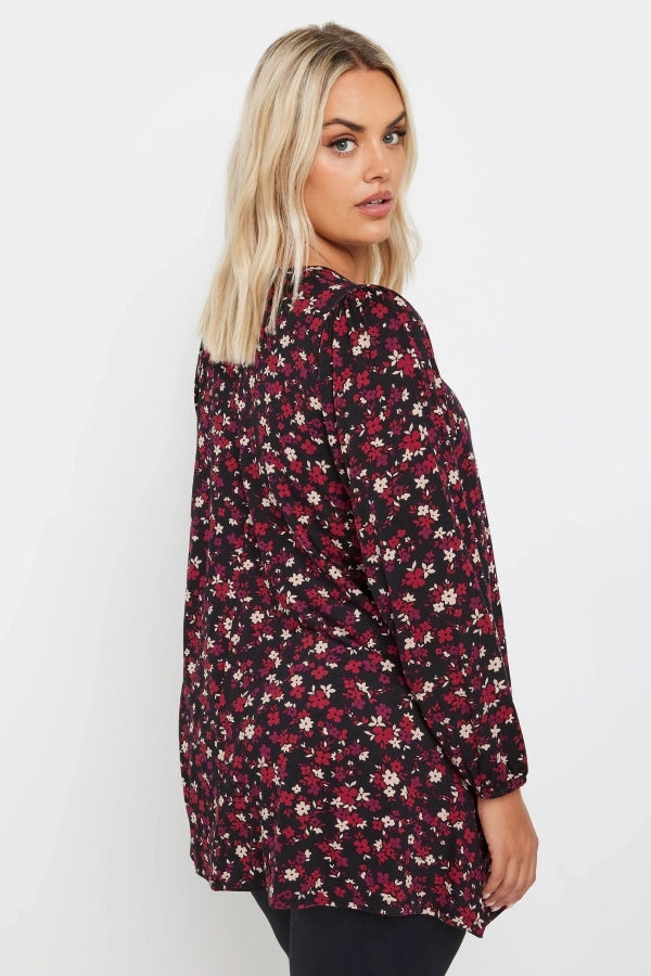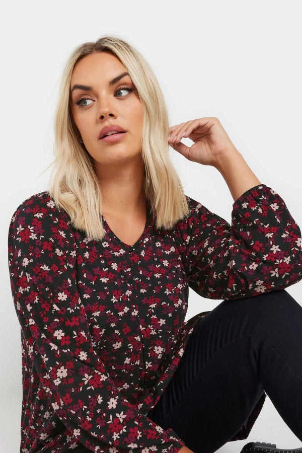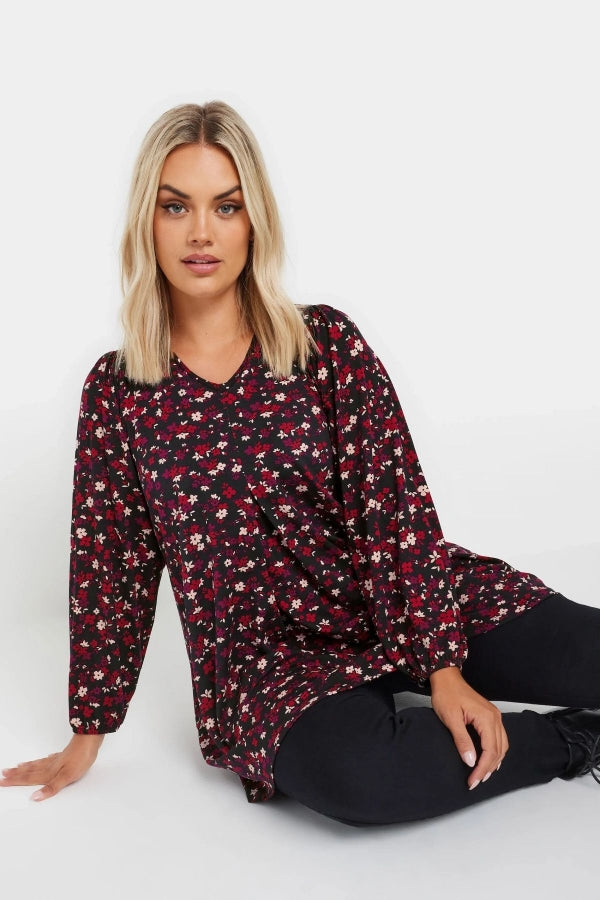 Büyük Beden V Yaka Uzun Kollu Çiçek Desenli Bluz 322098