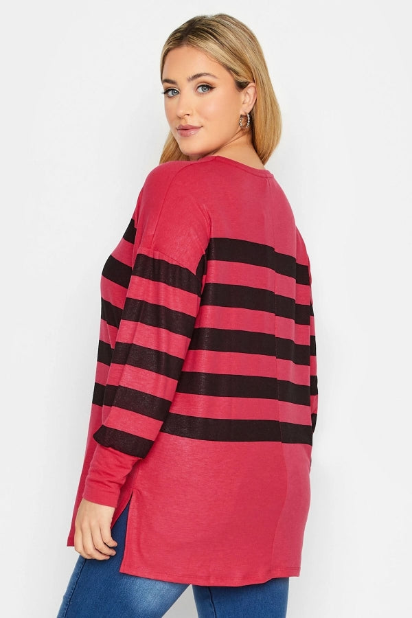 Büyük Beden V Yaka Uzun Kollu Çizgili Bluz 301566