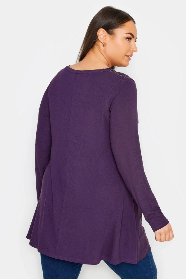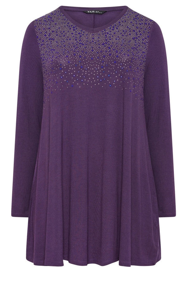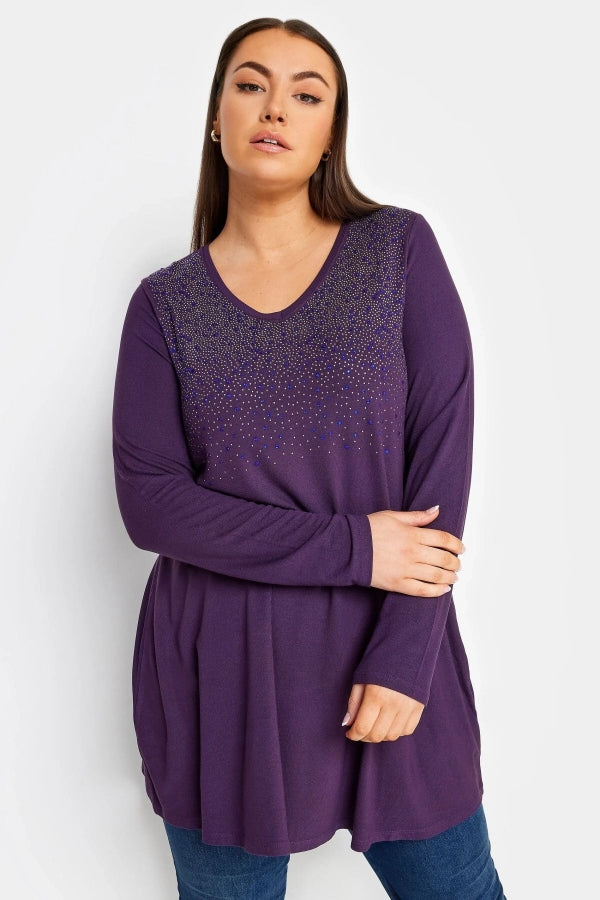 Büyük Beden V Yaka Uzun Kollu Önü Taş İşlemeli Bluz 302919