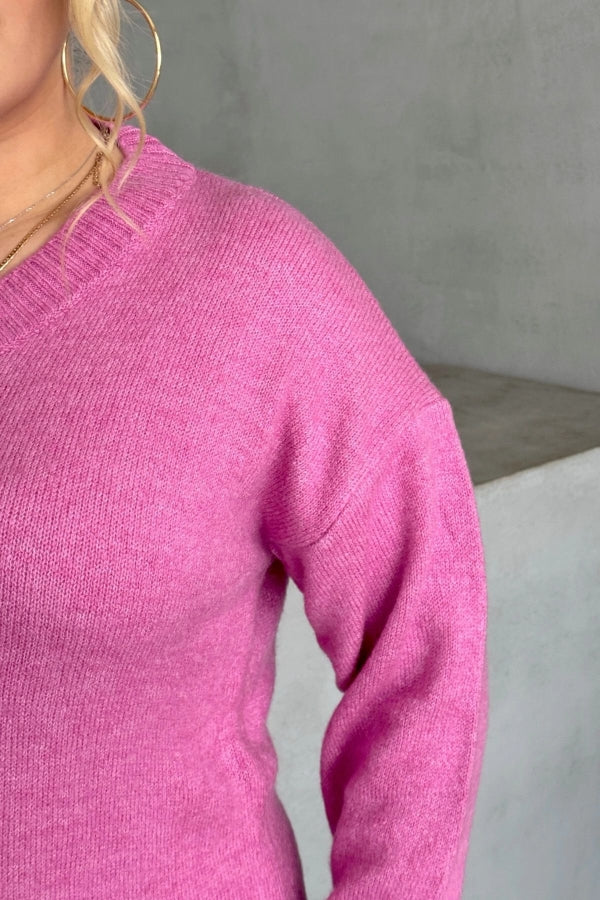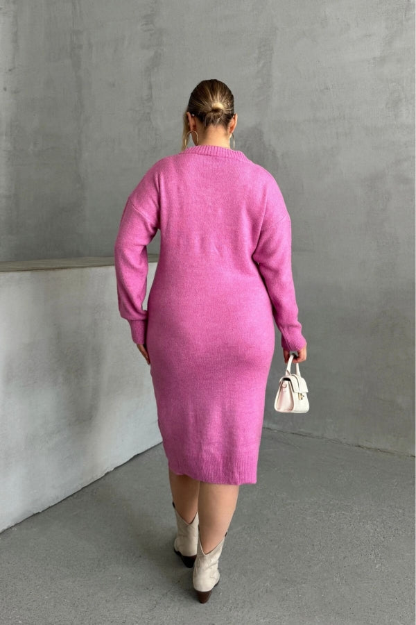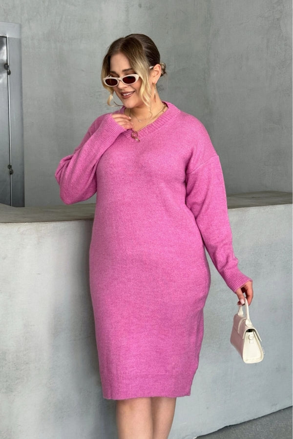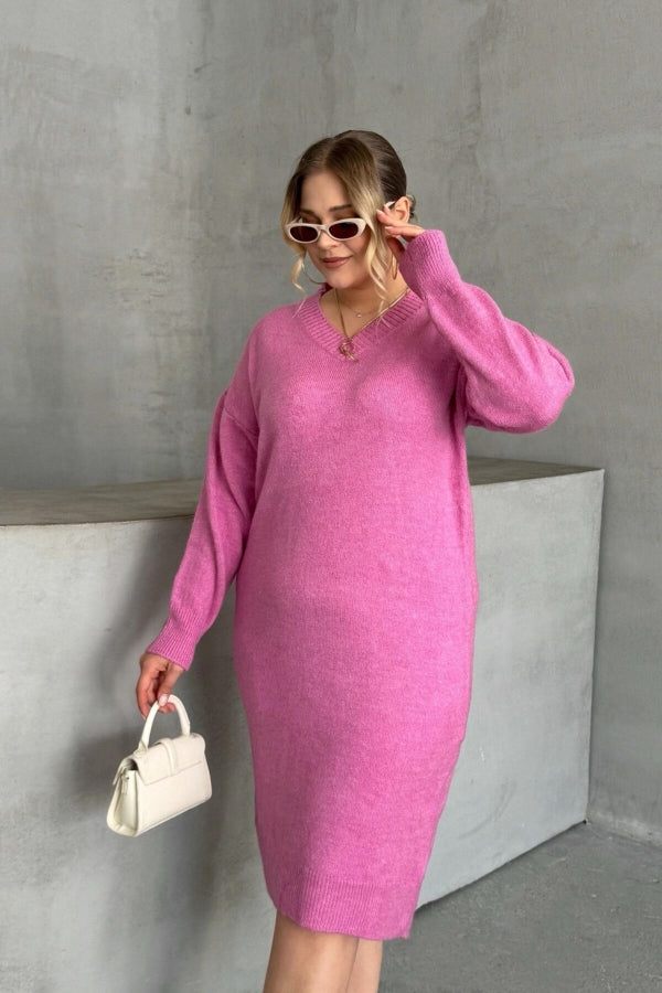 Büyük Beden V Yaka Uzun Kollu Örme Kazak Elbise 302336