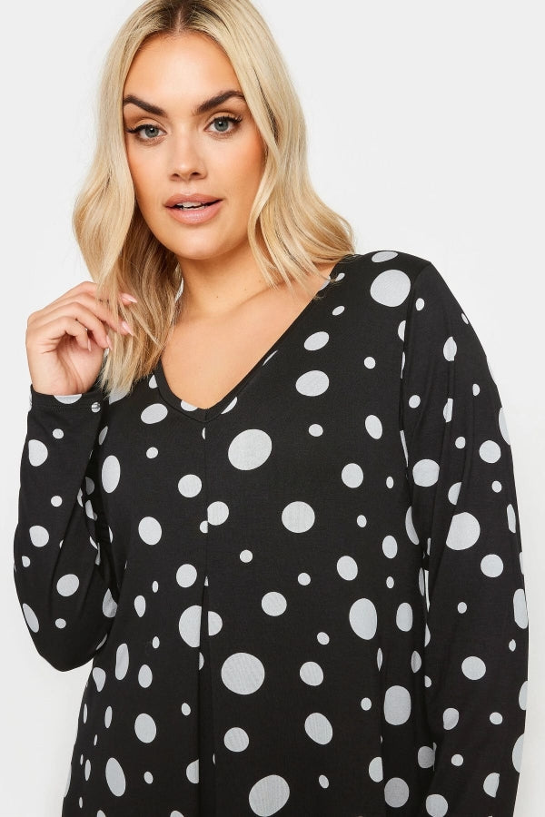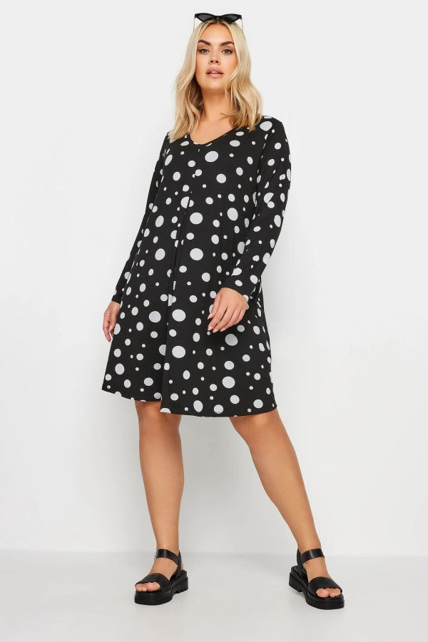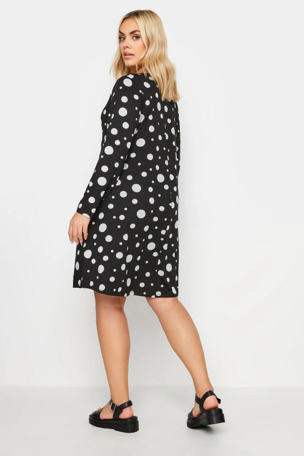 Büyük Beden V Yaka Uzun Kollu Puantiye Desenli Elbise 303104
