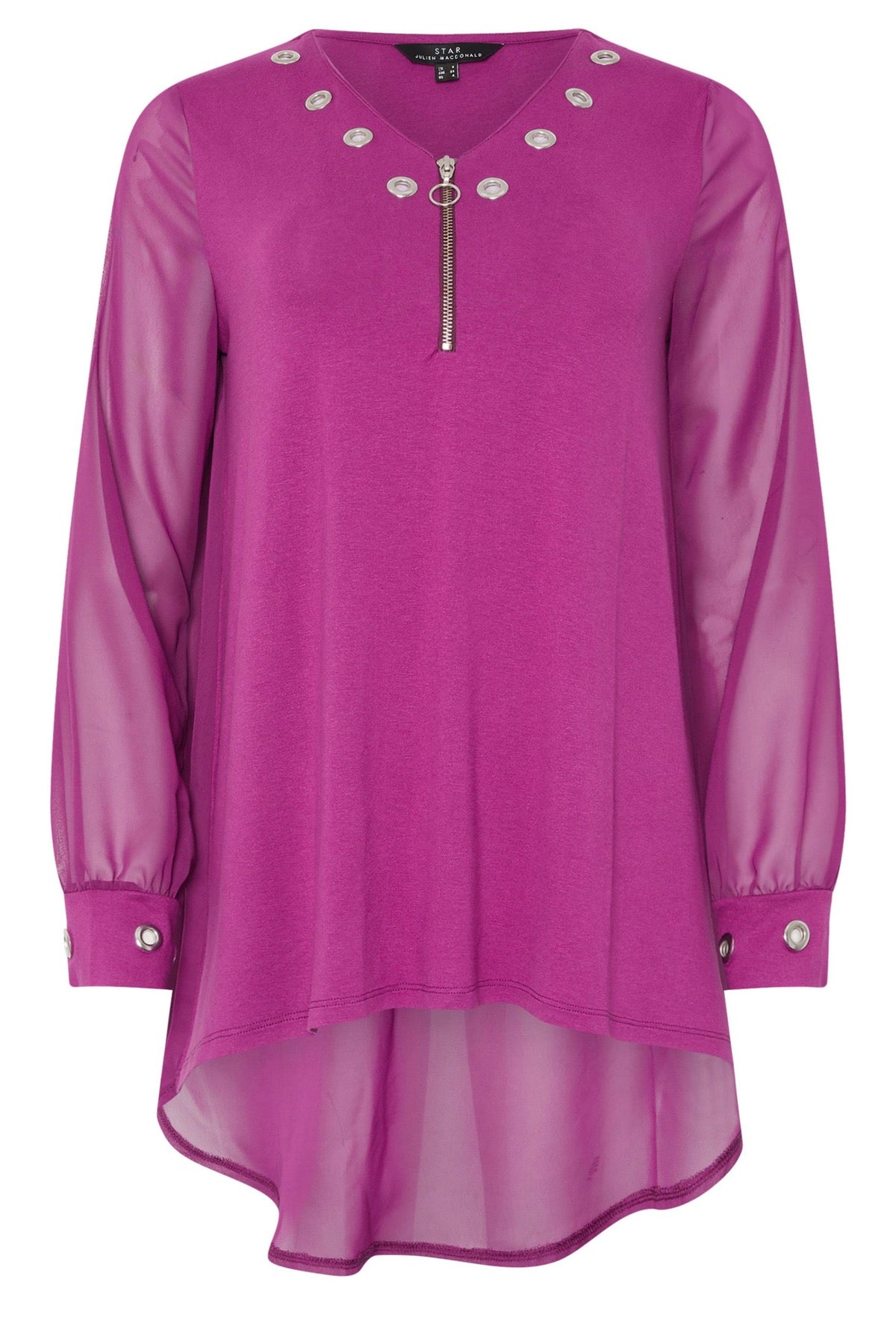 Büyük Beden V Yaka Uzun Kollu Tül Detaylı Asimetrik Kesim Bluz 110881