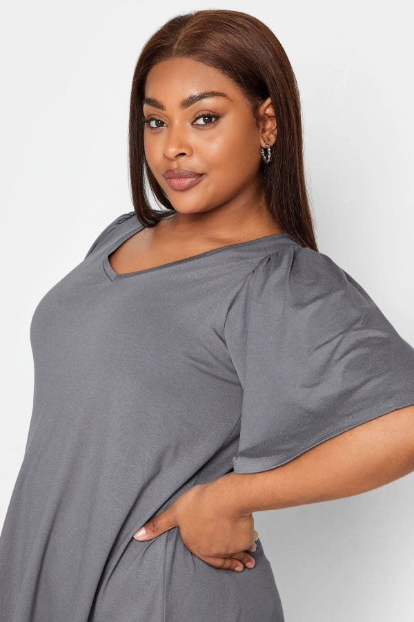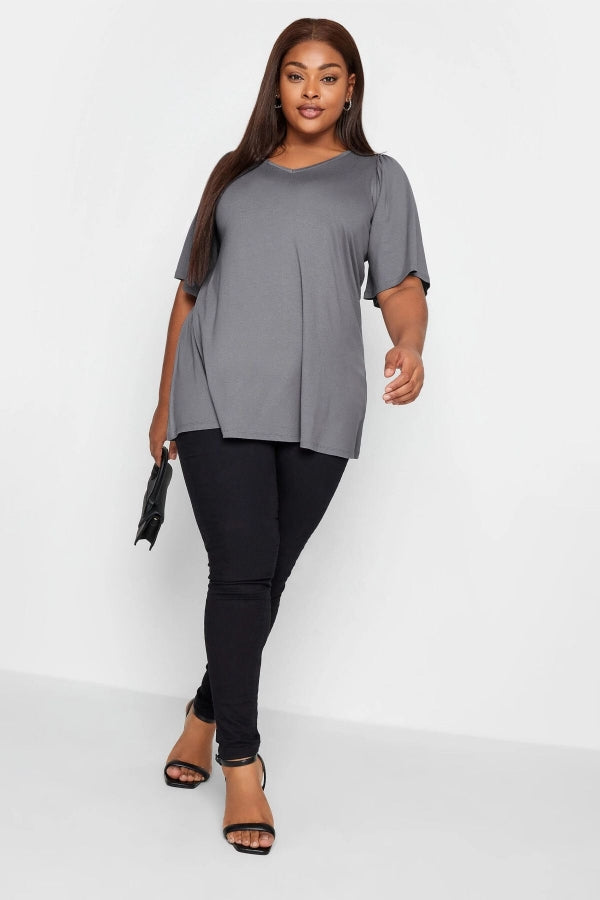Büyük Beden V Yaka Yarım Kol Likralı Düz Kesim Bluz 321145