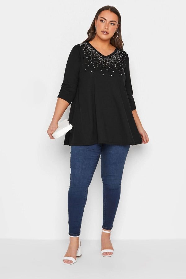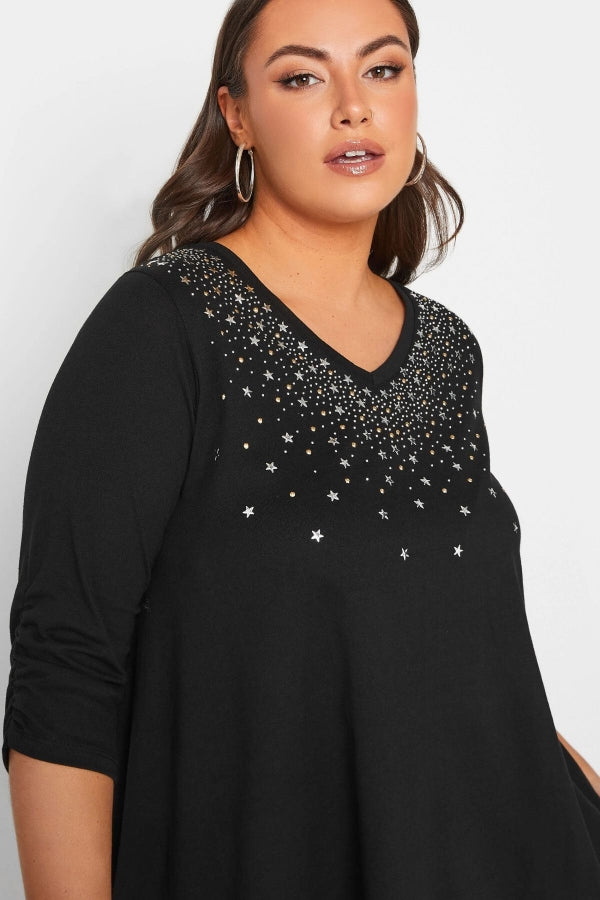 Büyük Beden V Yaka Yarım Kolları Büzgülü Önü İşleme Detaylı Bluz 302045