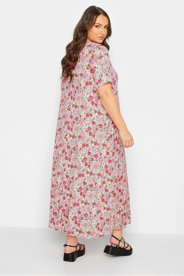 Büyük Beden V Yaka Yarım Kollu Cepli Desenli Uzun Elbise 137278