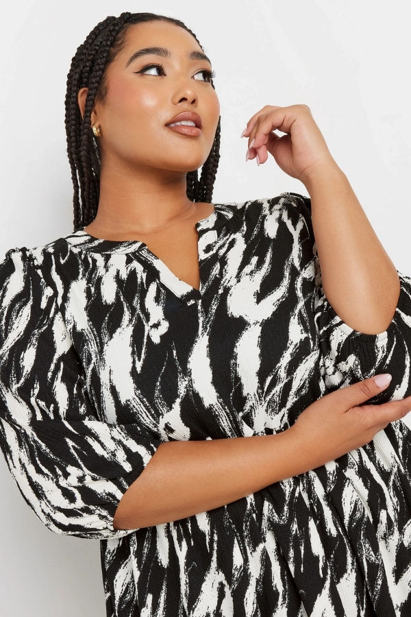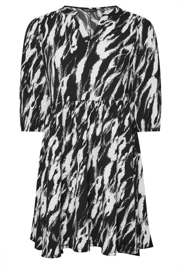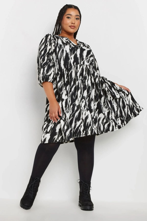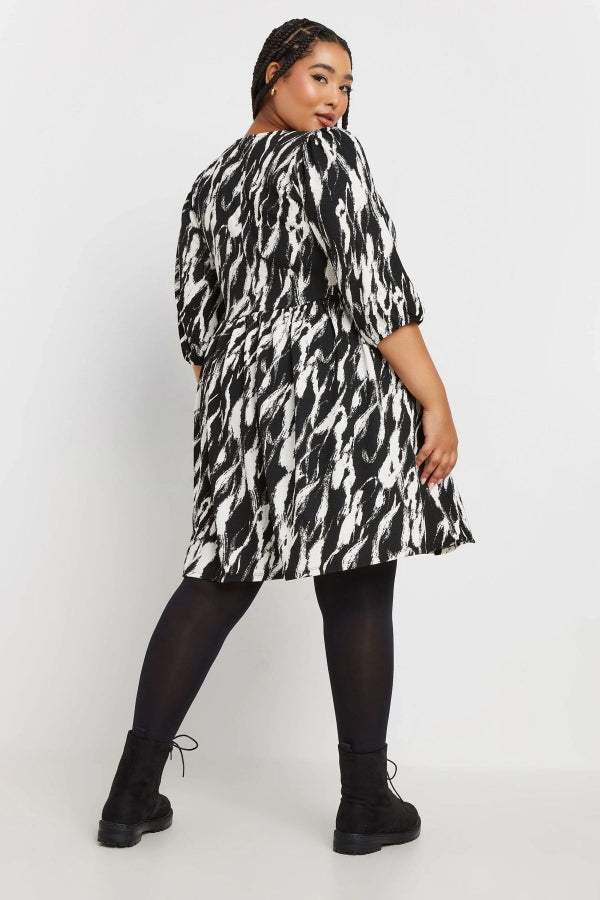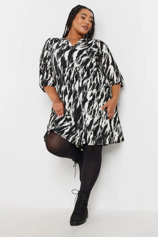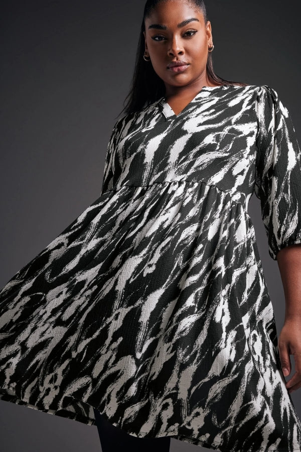 Büyük Beden V Yaka Yarım Kollu Desenli Mini Elbise 270029