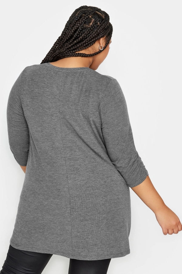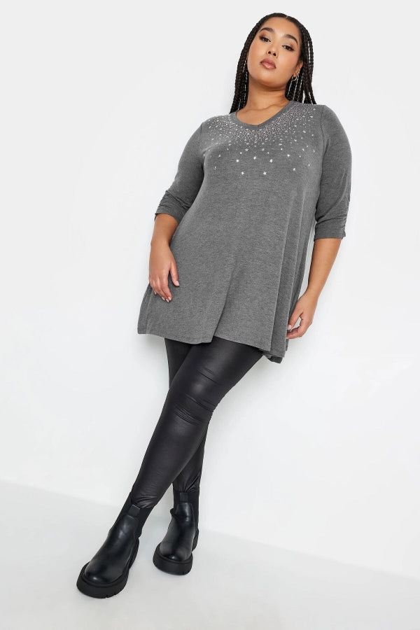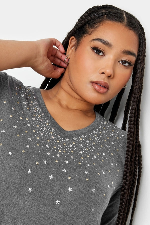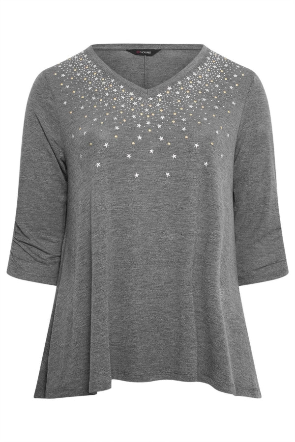 Büyük Beden V Yaka Yıldız Zımba Detaylı Yarım Kollu Bluz 302677