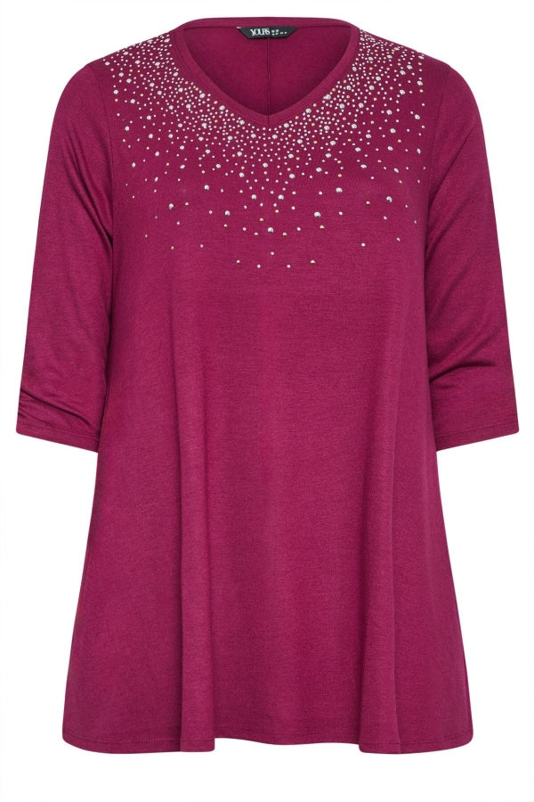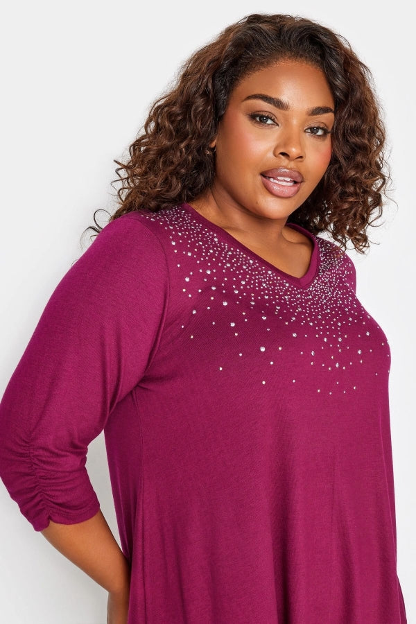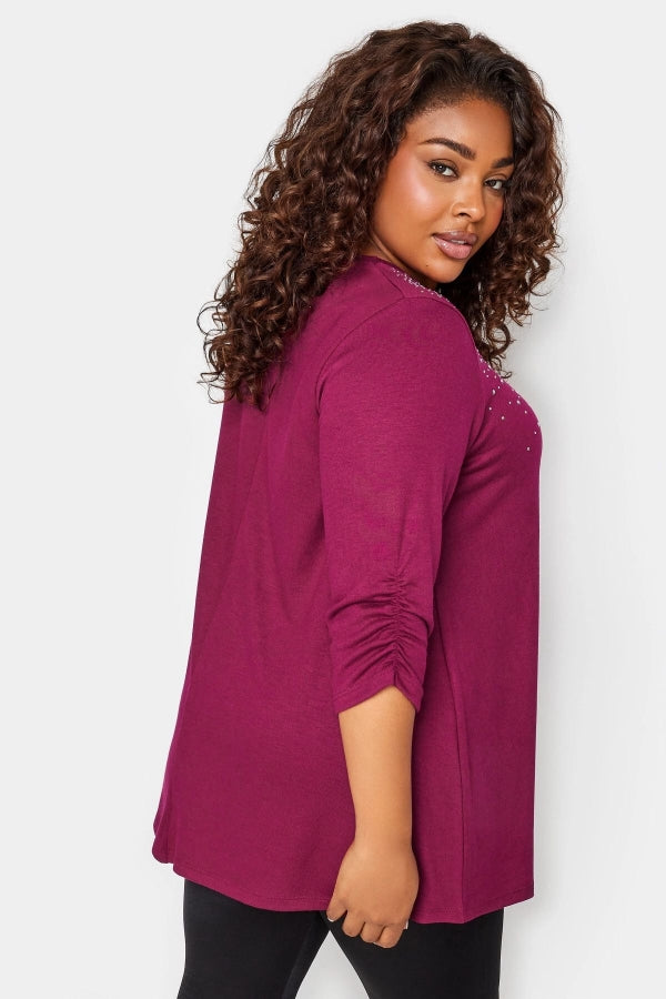 Büyük Beden V Yaka Zımbalı Yarım Kollu Bluz 285017