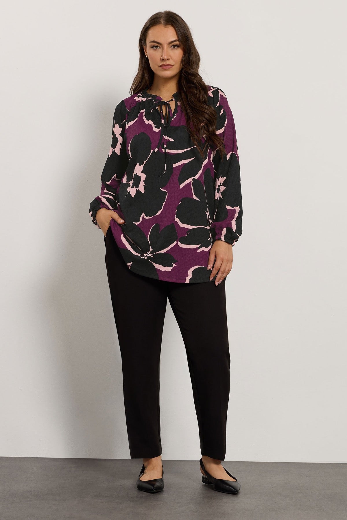 Büyük Beden Yakası Bağlamalı Uzun Kollu Çiçek Desenli Bluz 616410