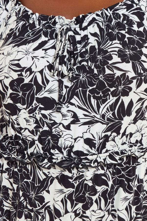 Büyük Beden Yakası Büzgülü Beli Lastikli Uzun Elbise 270238