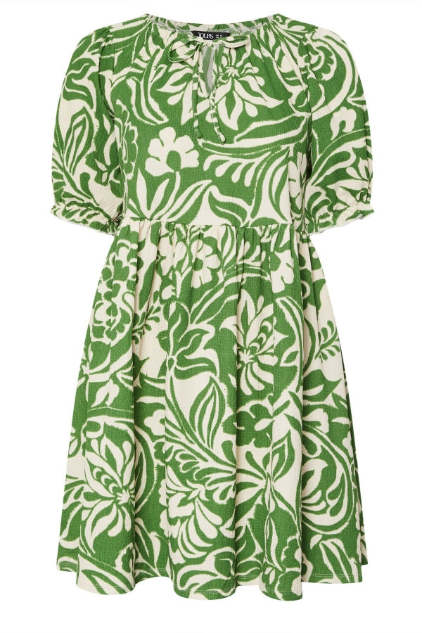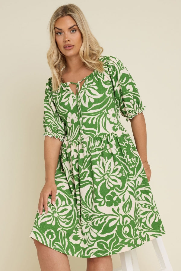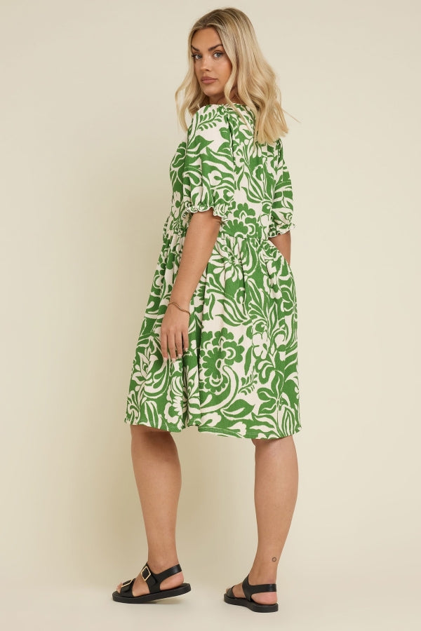 Büyük Beden Yakası Büzgülü Çiçek Desenli Mini Elbise 304112