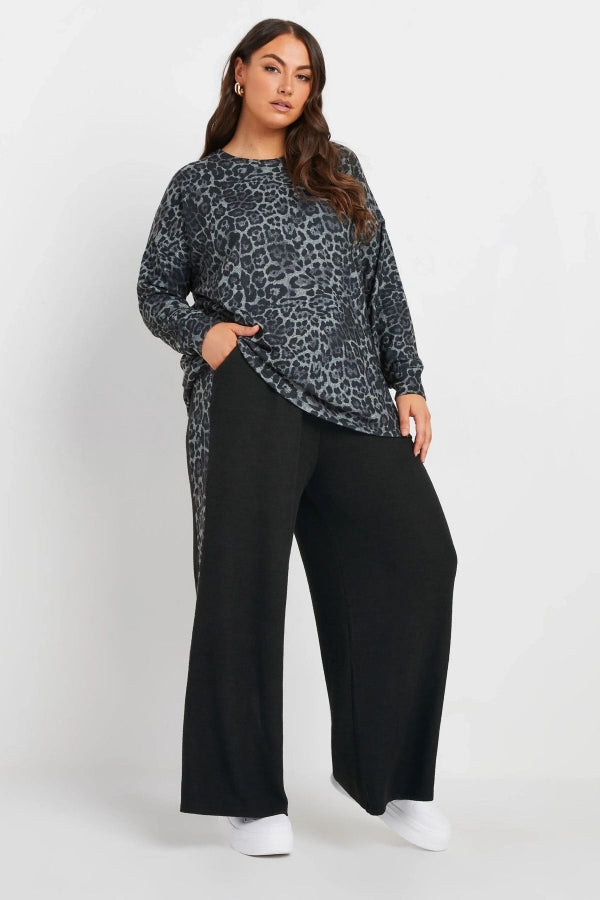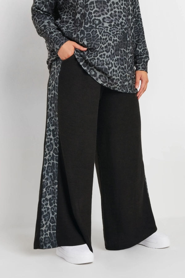 Büyük Beden Yanı Leopar Desenli Cepli Beli Lastikli ve Büzgülü Eşofman Altı 322194