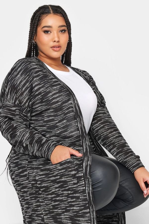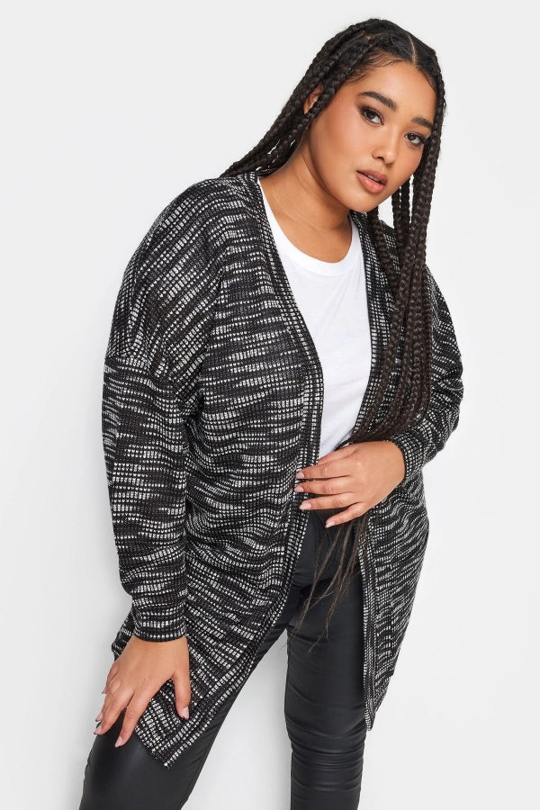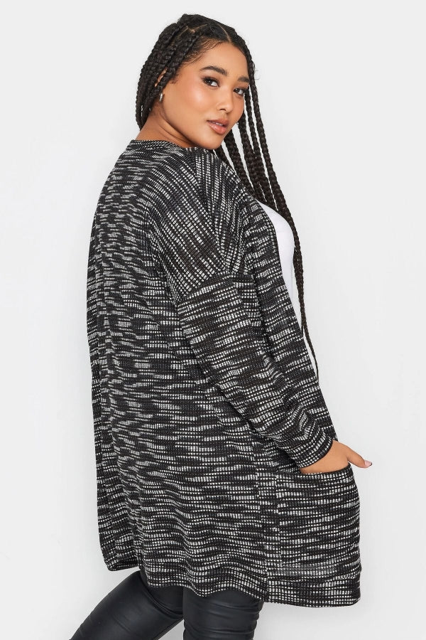 Büyük Beden Yanları Cepli Uzun Kollu Kontrast Örgü Hırka 302593