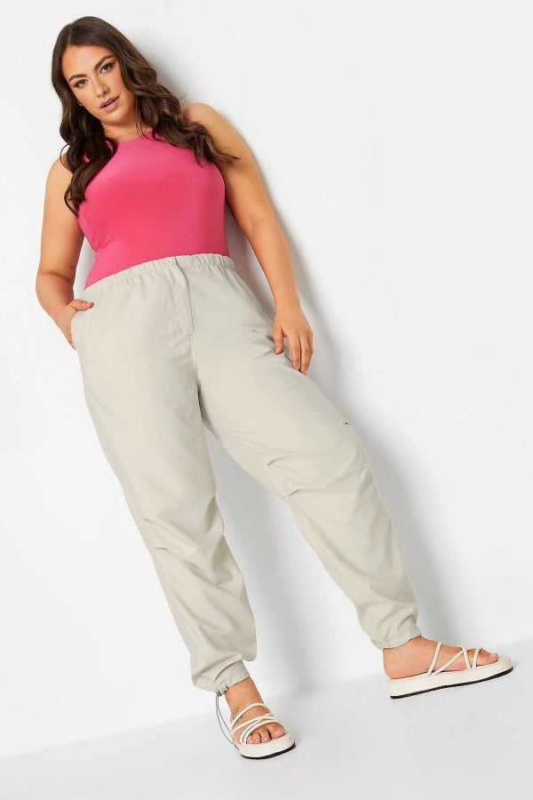 Büyük Beden Yanları ve Paçaları Büzmeli Lastikli Paraşüt Kumaş Pantolon 302030